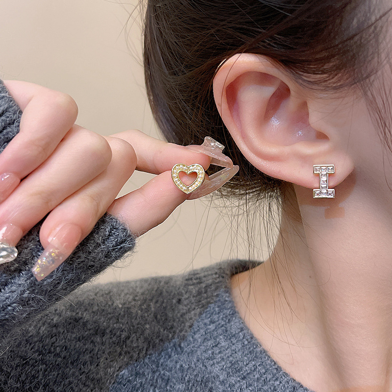 日韩甜美个性不对称珍珠爱心耳环女冷淡风小众设计感个性耳饰