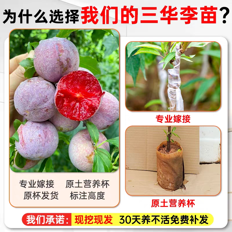 三华李子树苗嫁接银妃钱排半边红李青李子果苗带叶根原土泥球大果