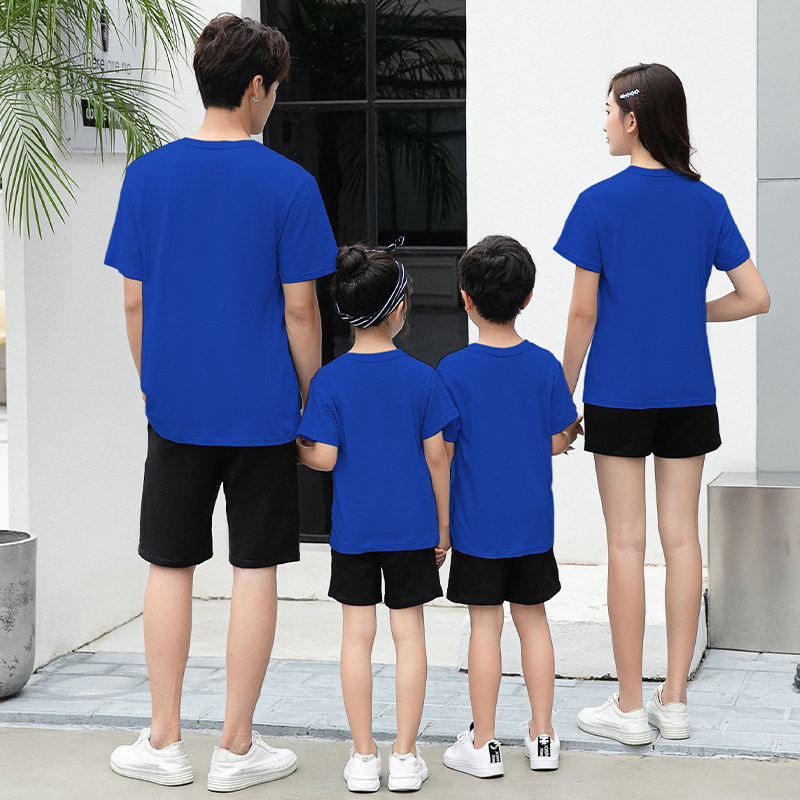 克莱因蓝亲子装t恤2023新款夏季一家三口休闲深蓝纯色短袖母女装