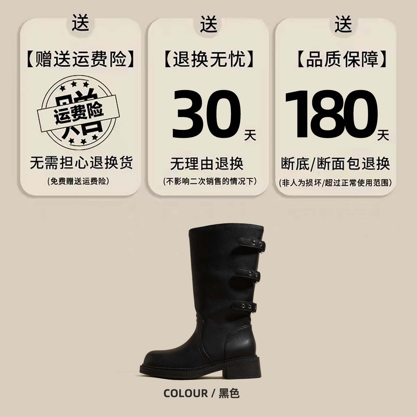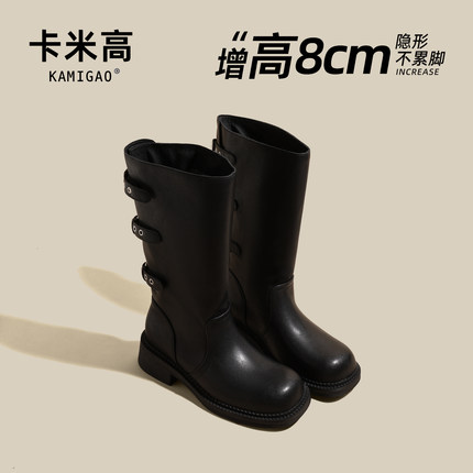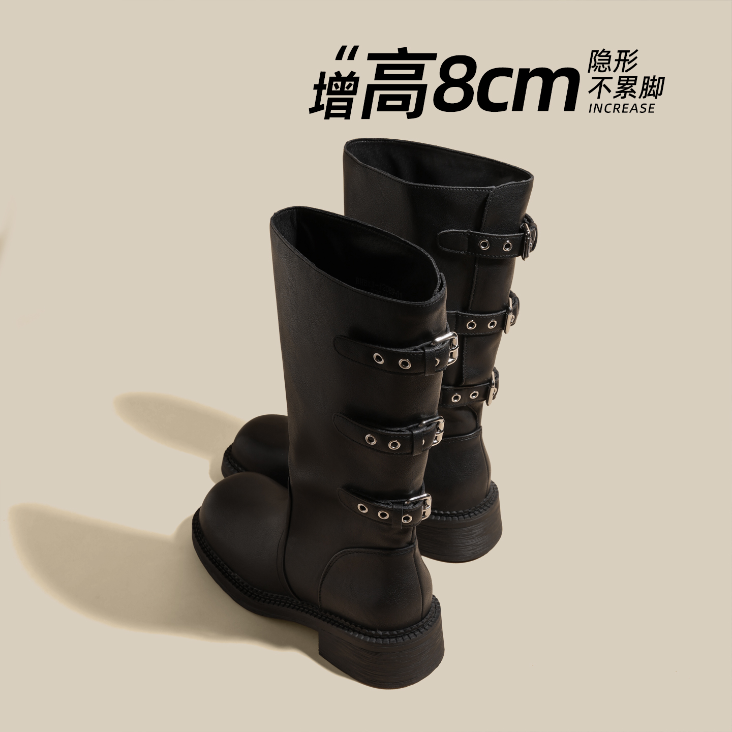 8cm内增高骑士靴女2025秋冬新款厚底长筒黑色马丁靴复古显瘦长靴