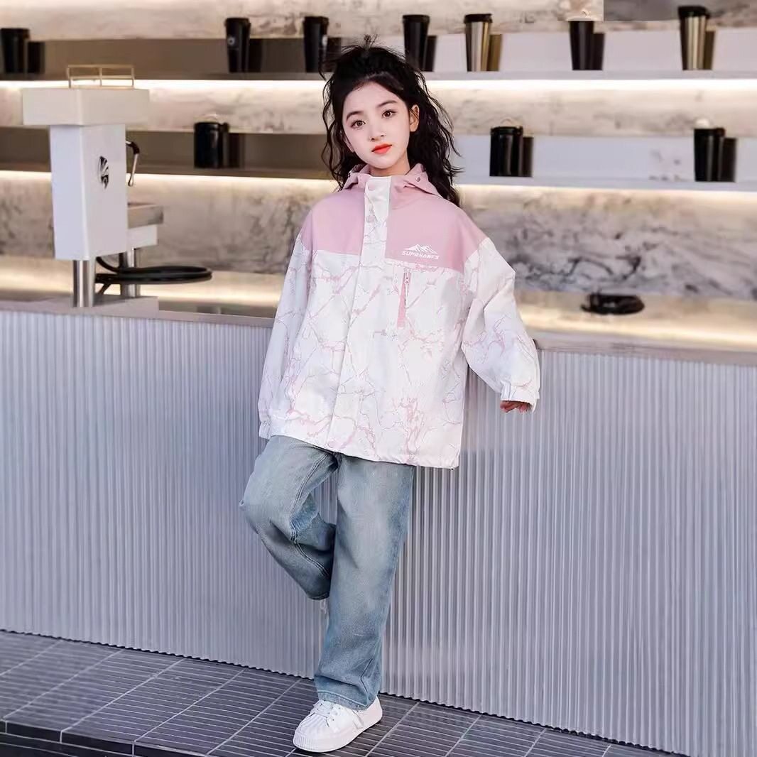 2024女童外套春秋款韩版女孩洋气春装时髦上衣儿童冲锋衣拼色