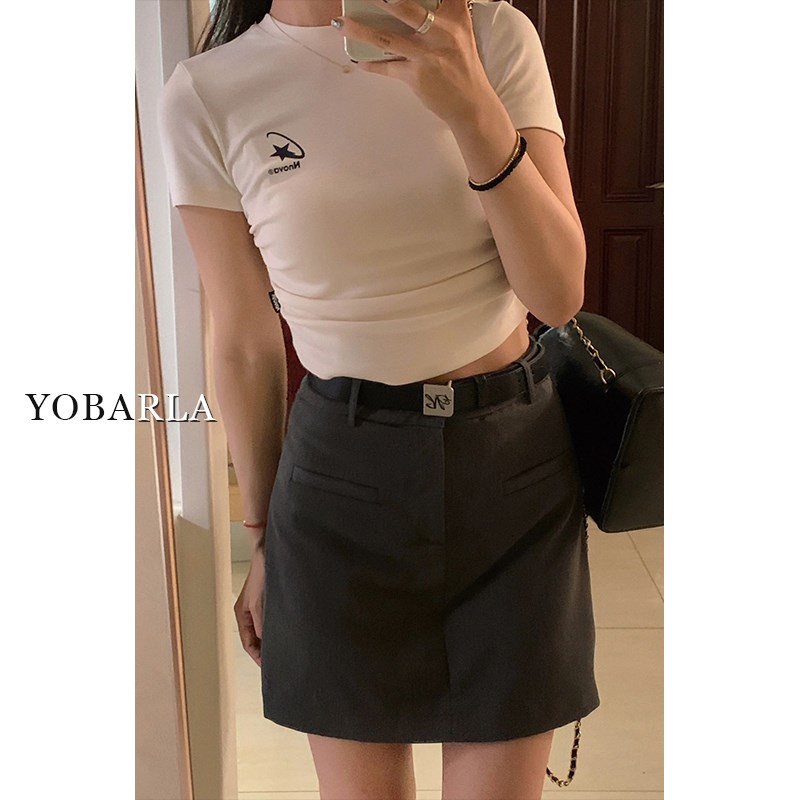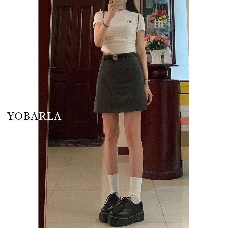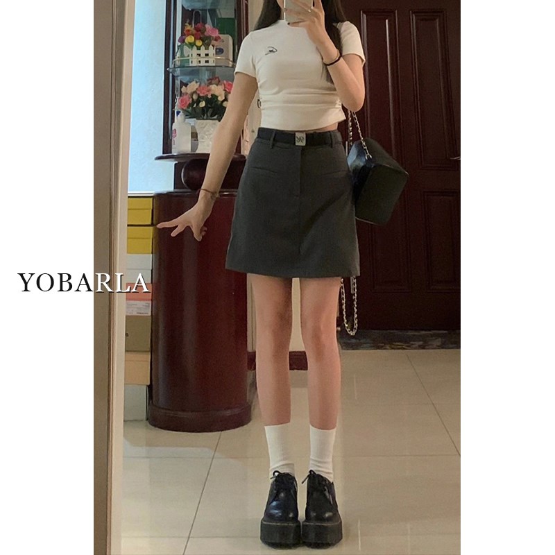 深灰色高腰西装短裙女夏季大码胖mm梨形身材小个子显瘦a字半身裙