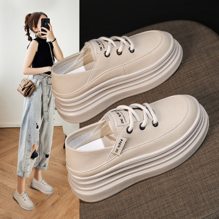 2025年超火秋季新款内增高小白女鞋女真皮透气厚底板鞋子两穿夏季