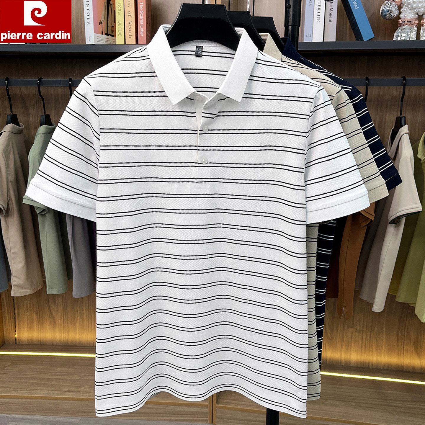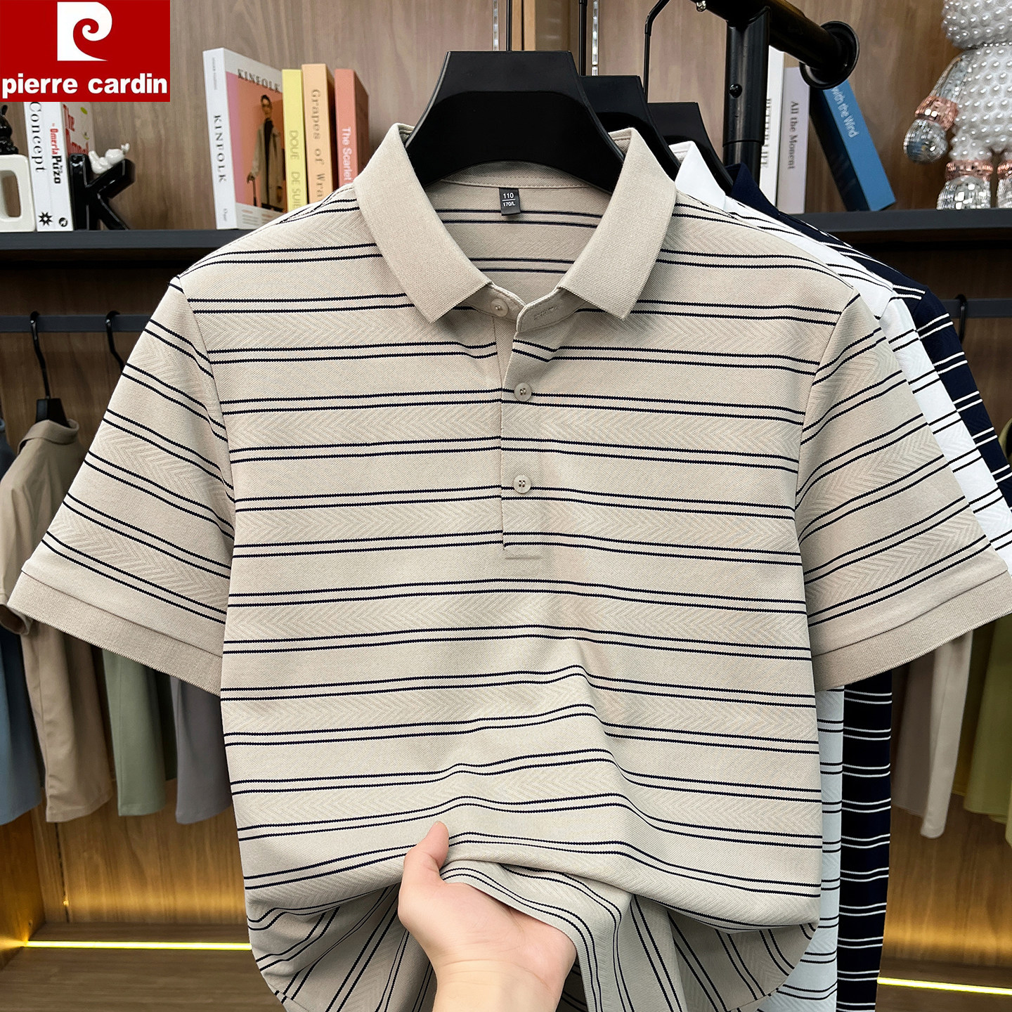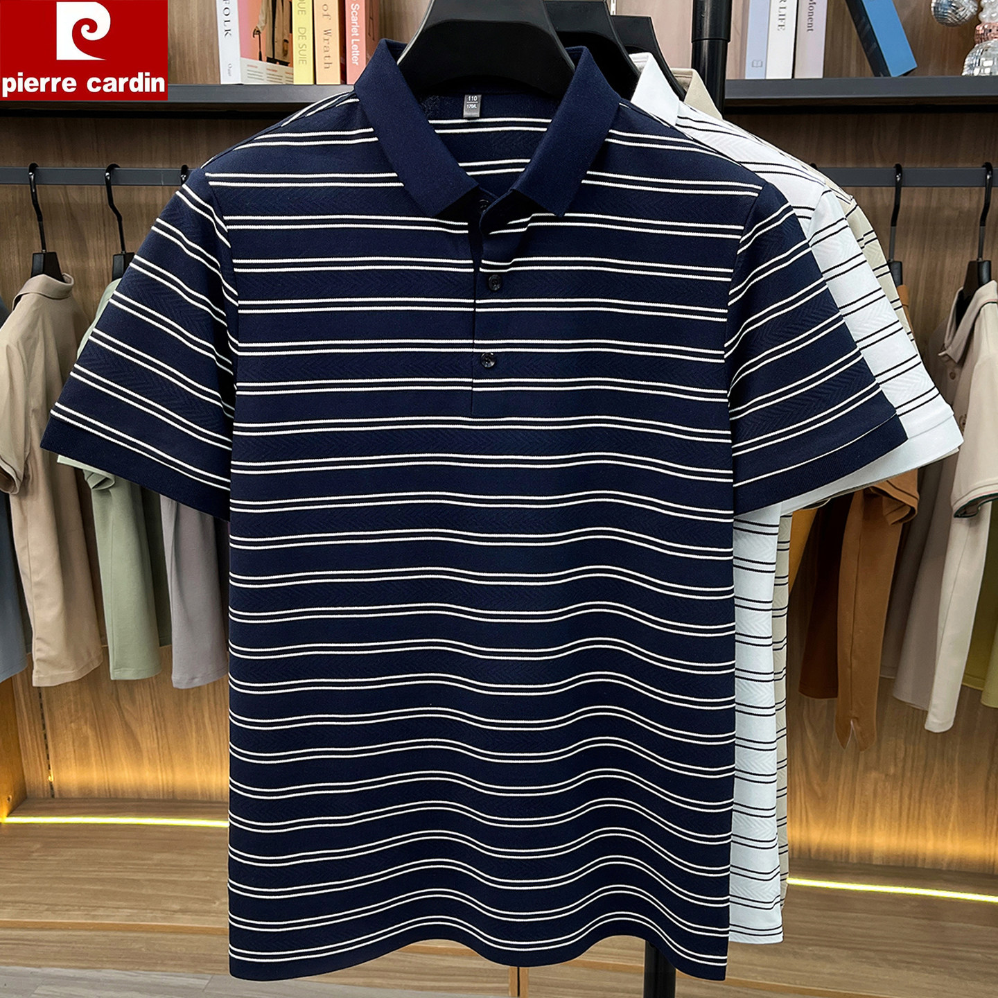 皮尔卡丹翻领条纹POLO衫男夏季新款休闲短袖T恤男爸爸装半袖上衣