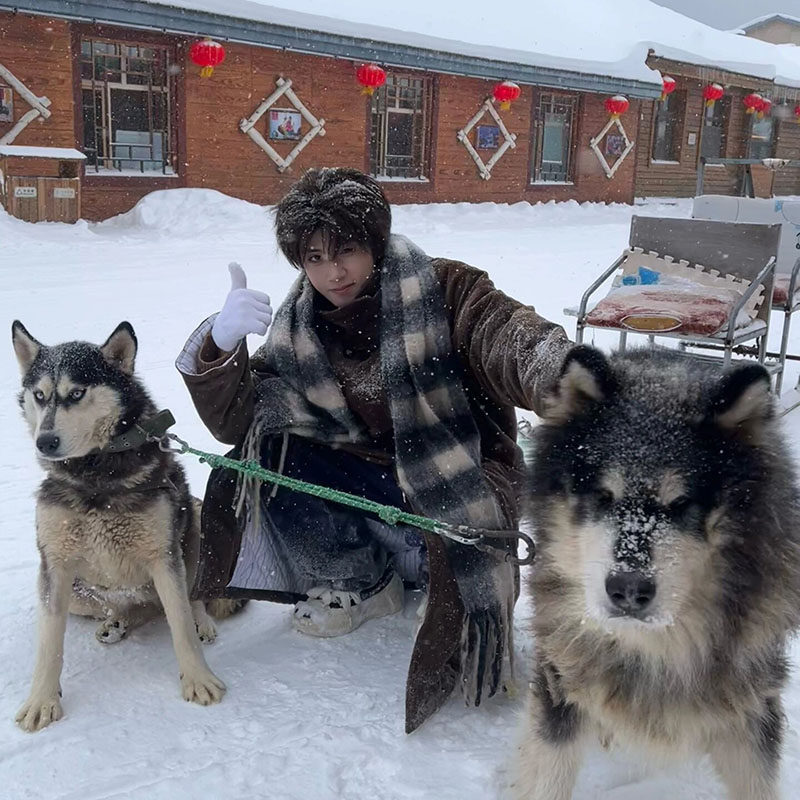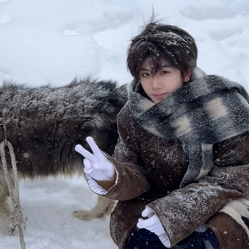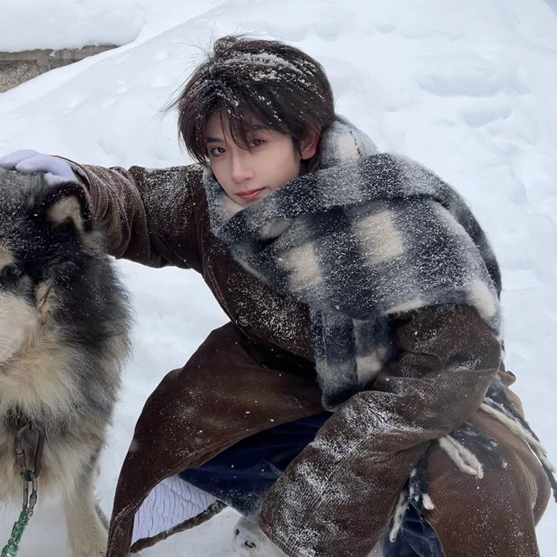 大围冬季巾男保暖马海毛加厚百搭披肩情侣围脖女潮虞书欣同款格子