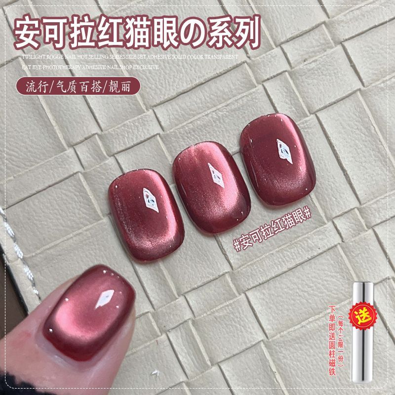网红安可拉红猫眼指甲油胶2025年新款流行玻璃珠超亮瓷白粉光疗胶