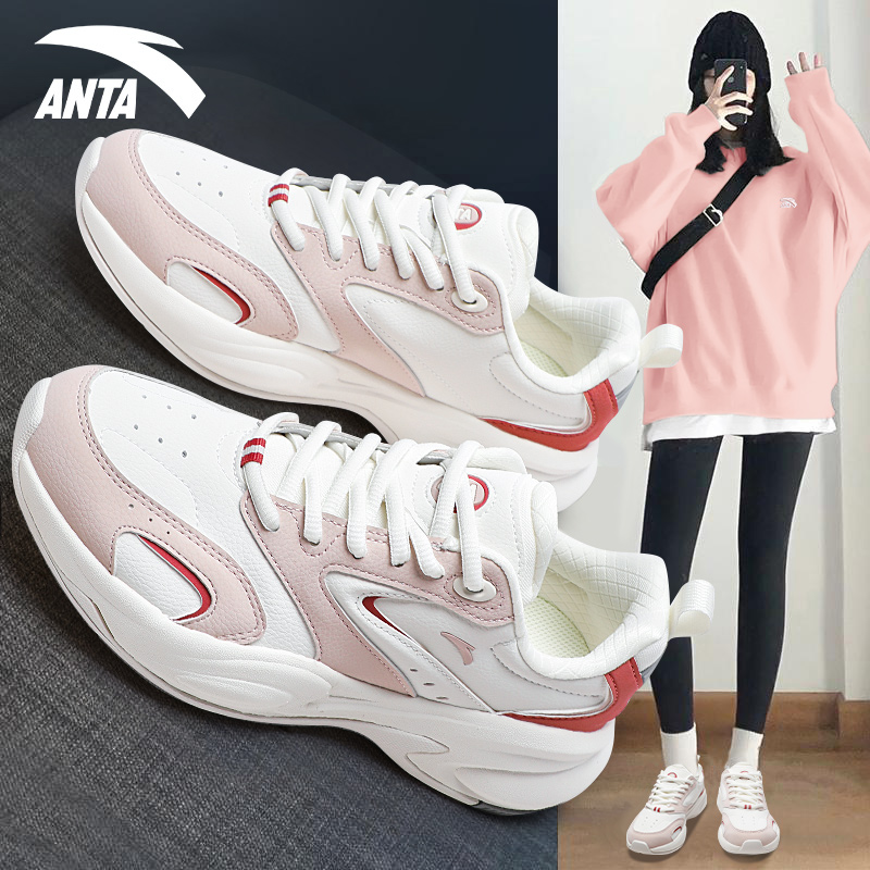 安踏ACE2复古老爹鞋女皮面运动鞋