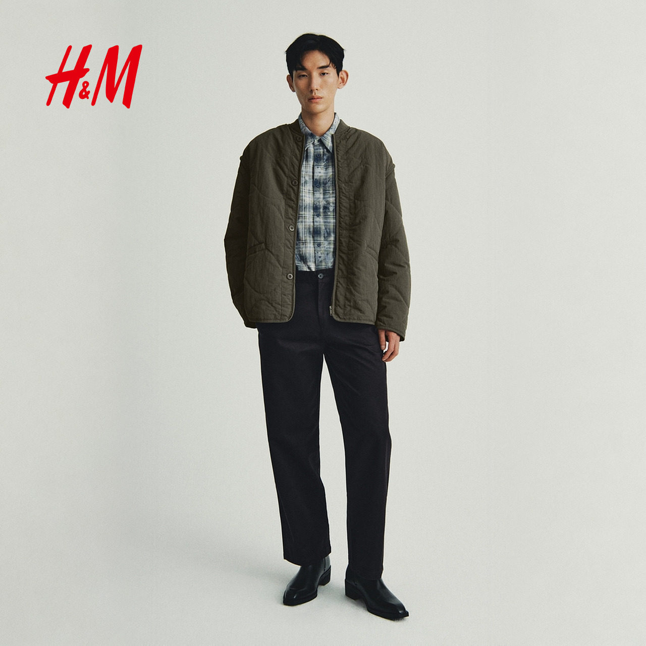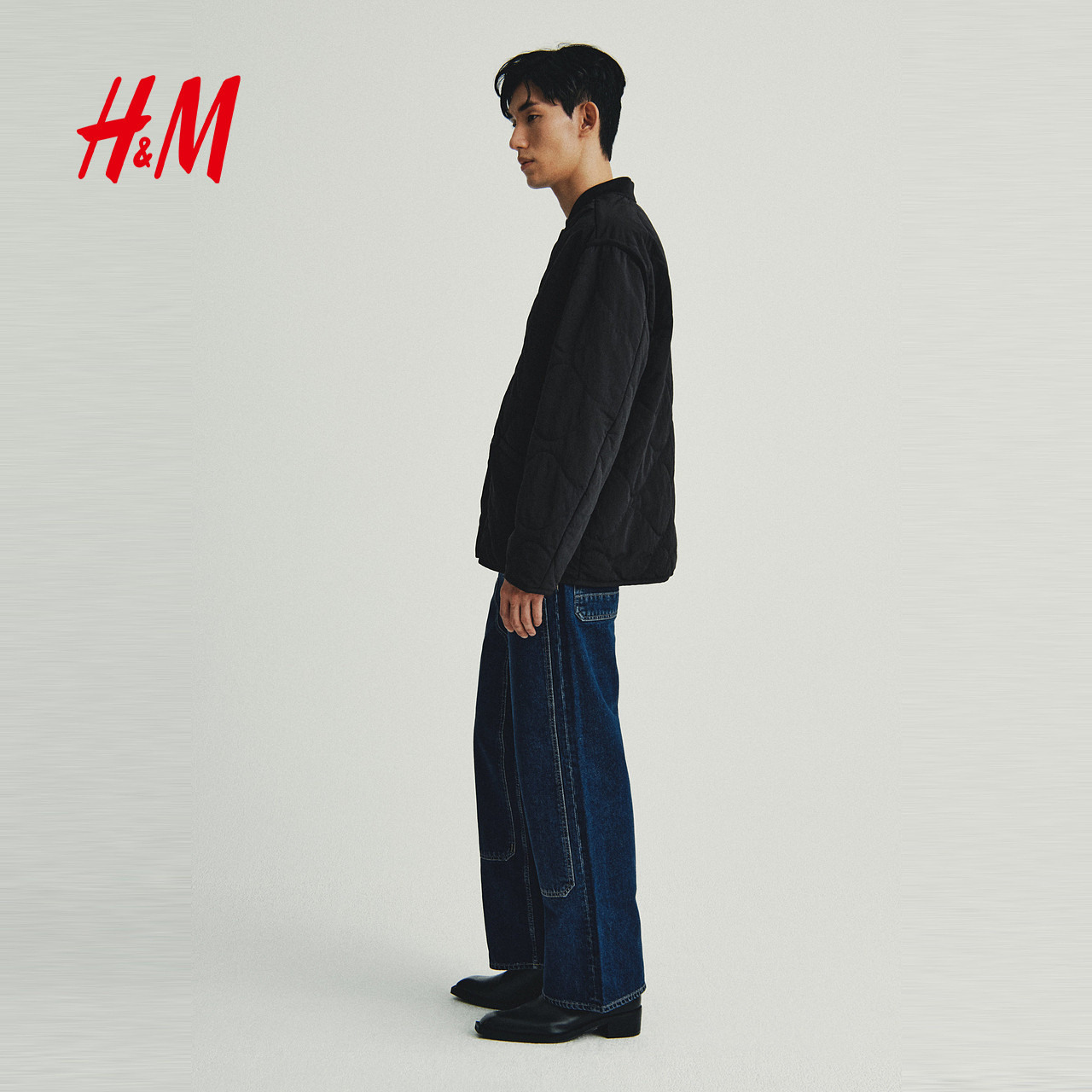 HM男装棉衣冬季冬装绗缝尼龙休闲宽松户外外套1300942