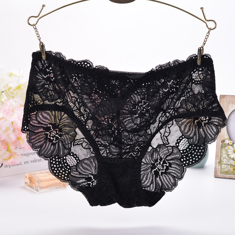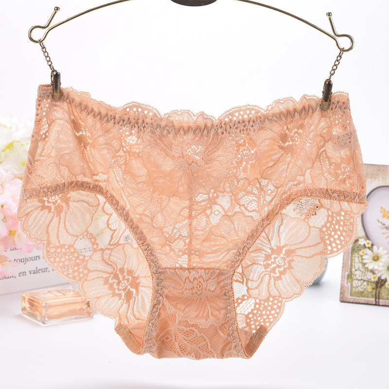 性感透明蕾丝内裤女士中腰诱惑纯色花朵镂空网纱三角裤薄款透气