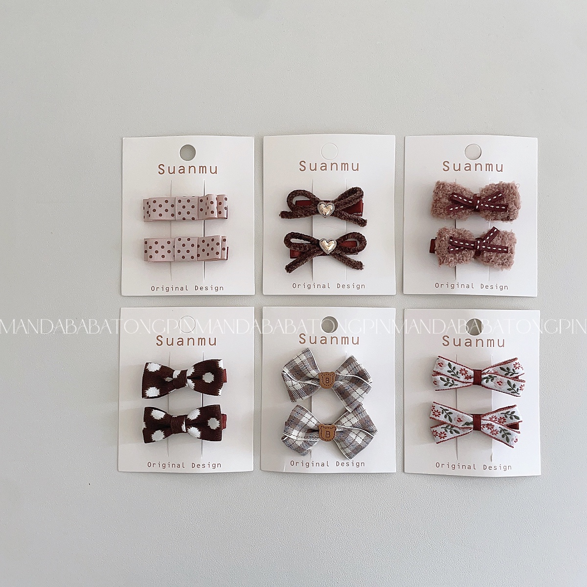 女童韩版毛绒发夹发绳甜美发饰百搭奶咖波点鸭嘴夹儿童蝴蝶结皮筋