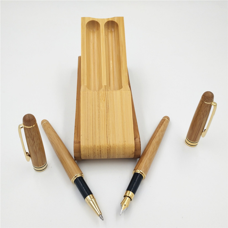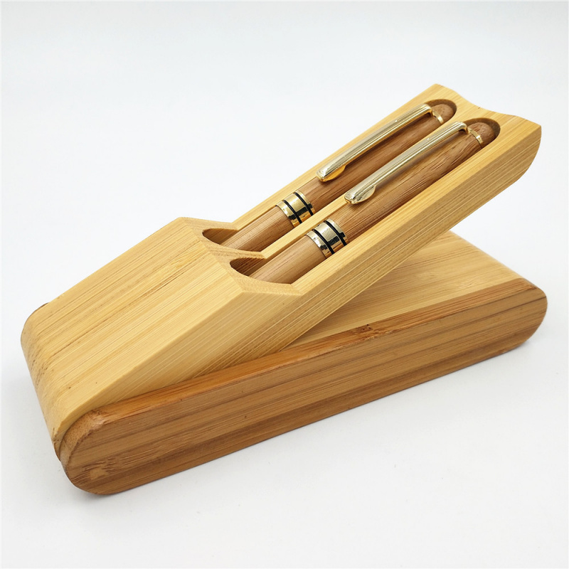 现货批发碳化楠竹双支笔折叠笔盒套装竹质钢笔套装批量刻字