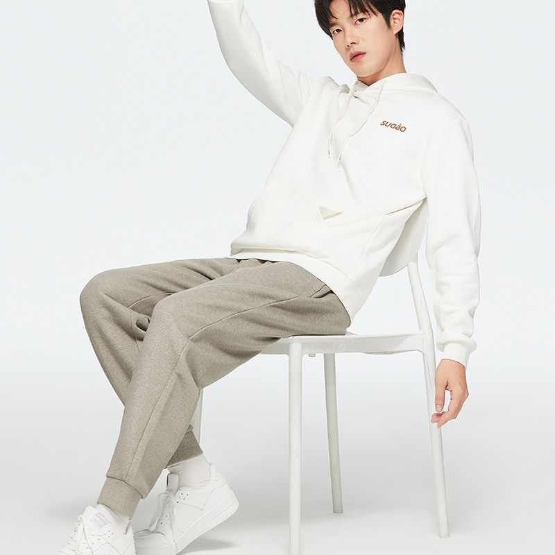 素道有机彩棉情侣针织裤 灰色结绳运动裤 常规厚度束口长款卫裤