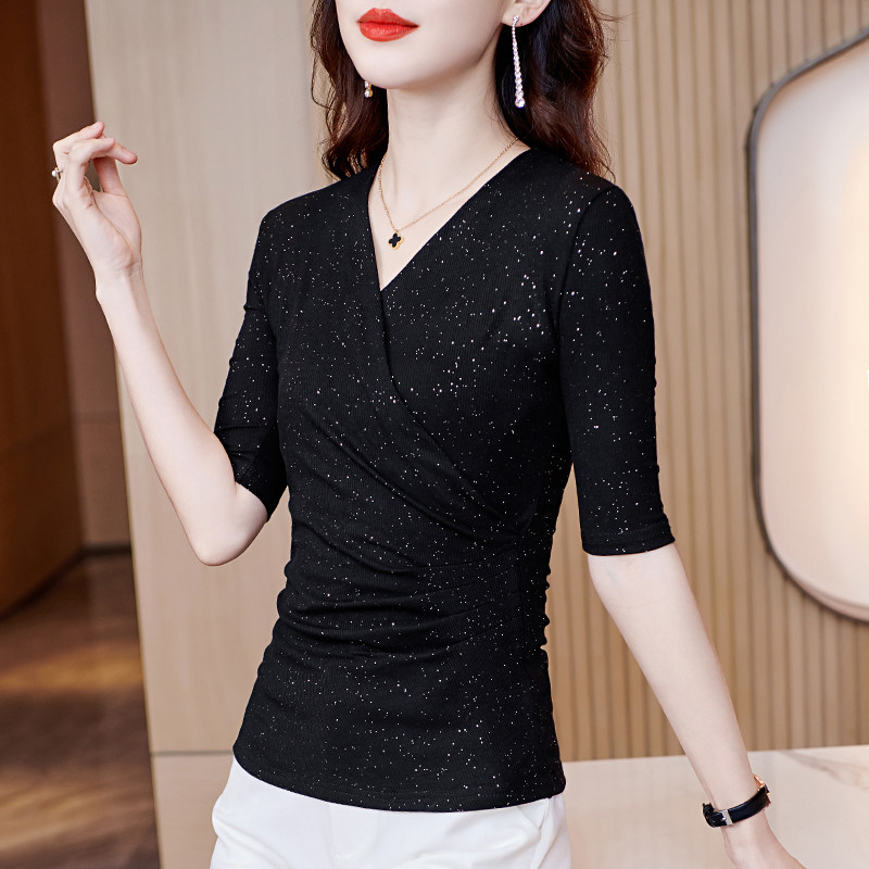 莫代尔法式v领打底衫女春夏季2026新款内搭修身中袖t恤基础款上衣