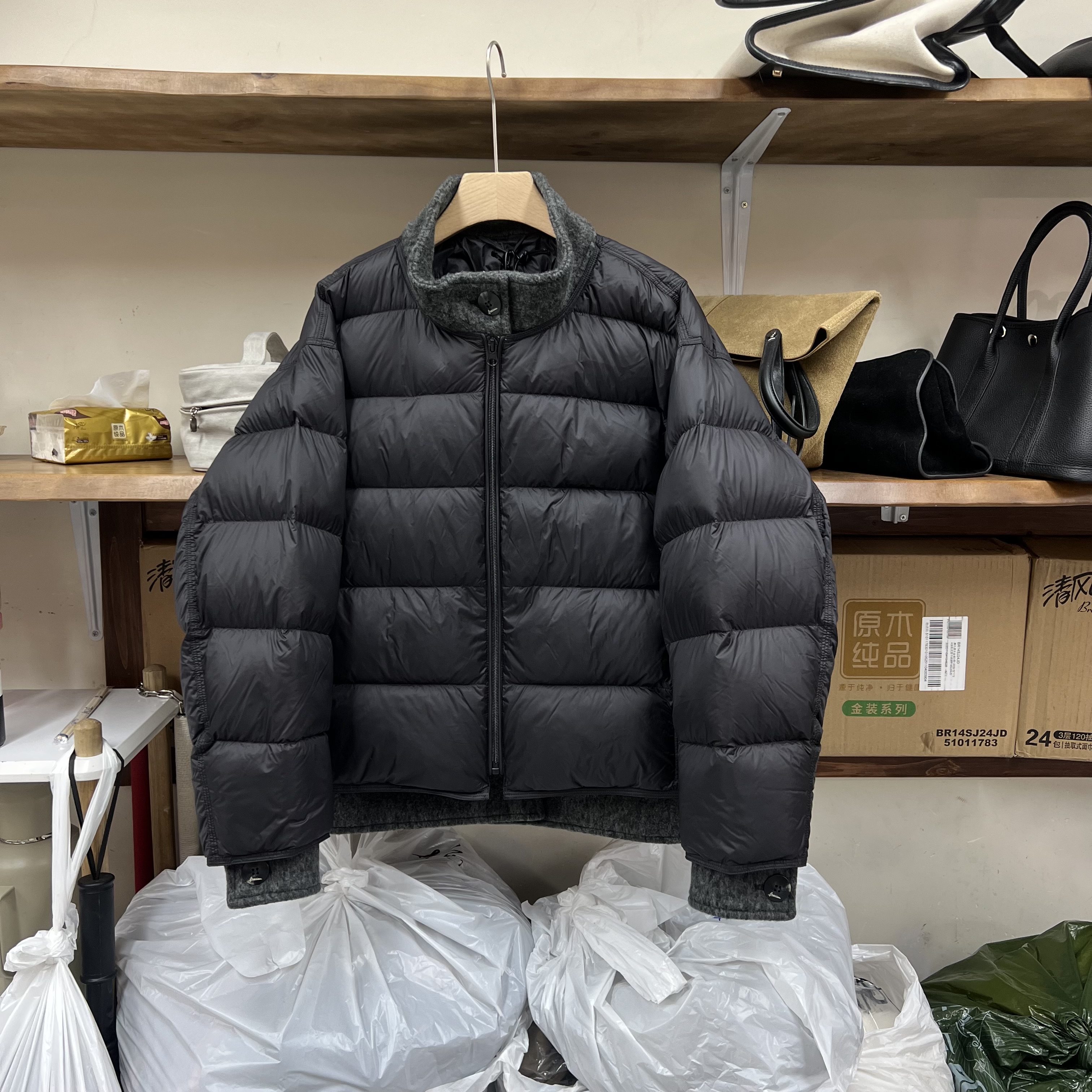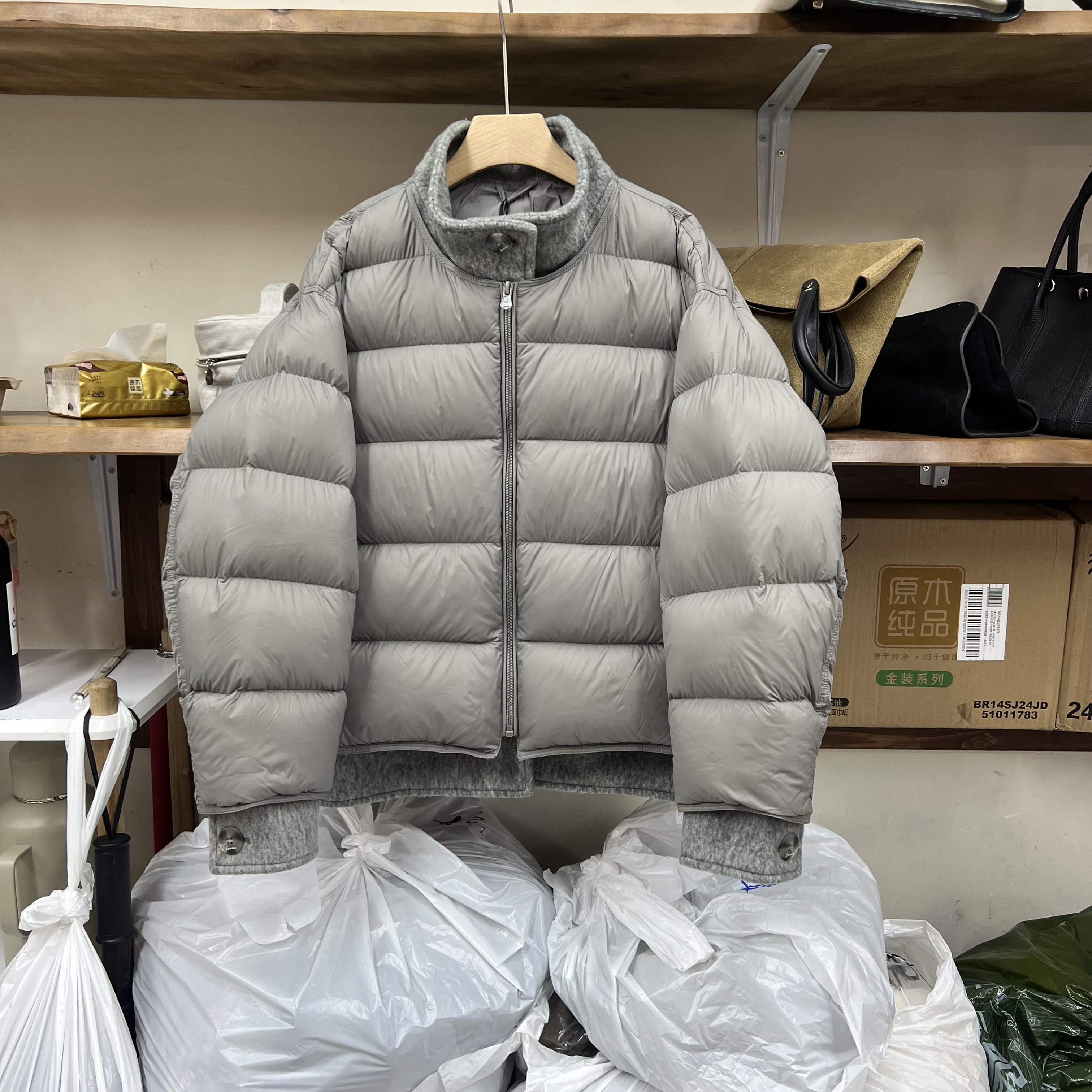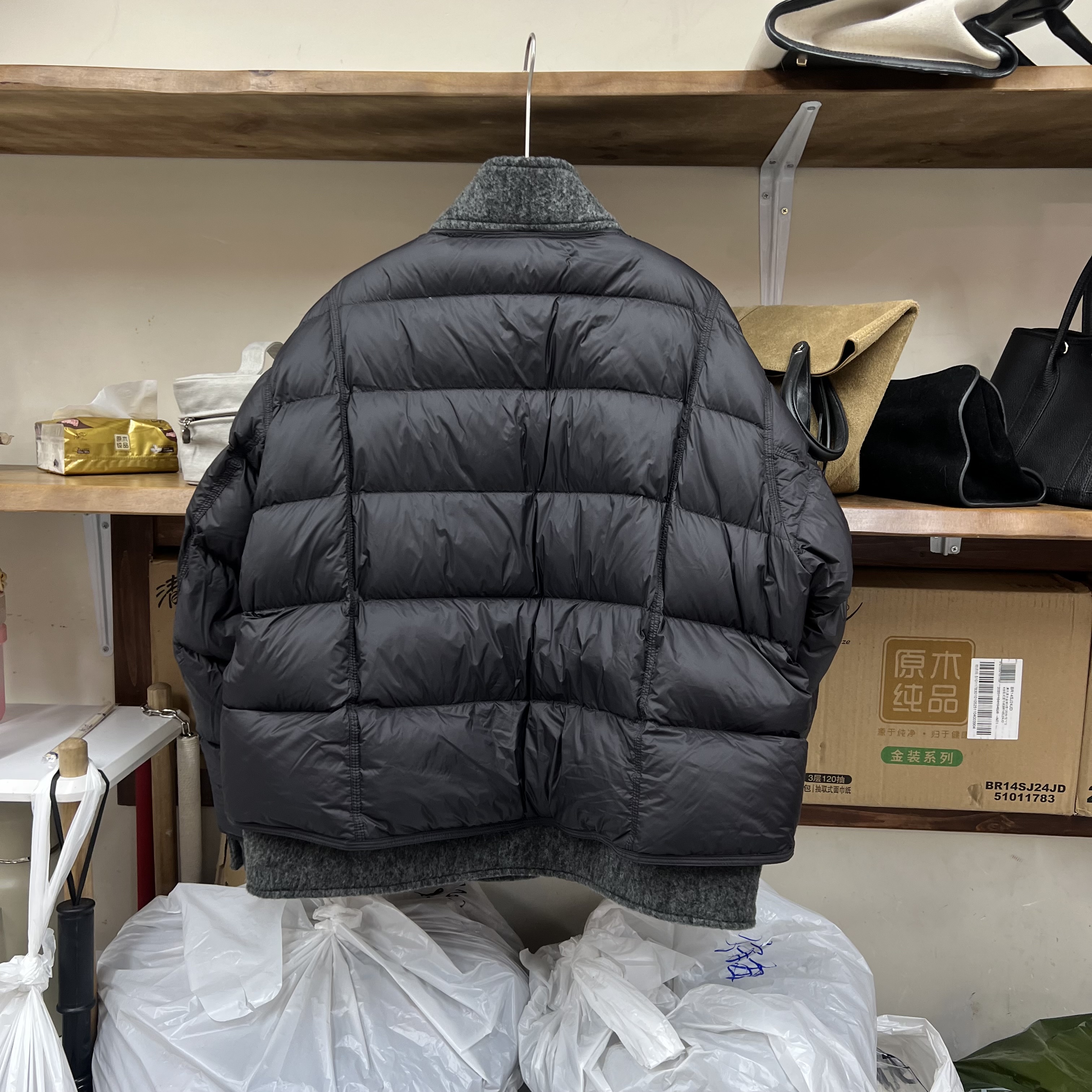 25089冬季设计感毛呢拼接立领假两件羽绒服女保暖95白鸭绒外套潮