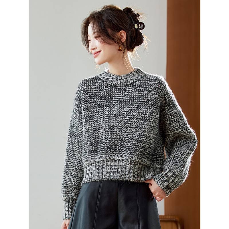 小香风毛衣女款秋冬季2025新款韩系超好看短款套头羊毛针织打底衫