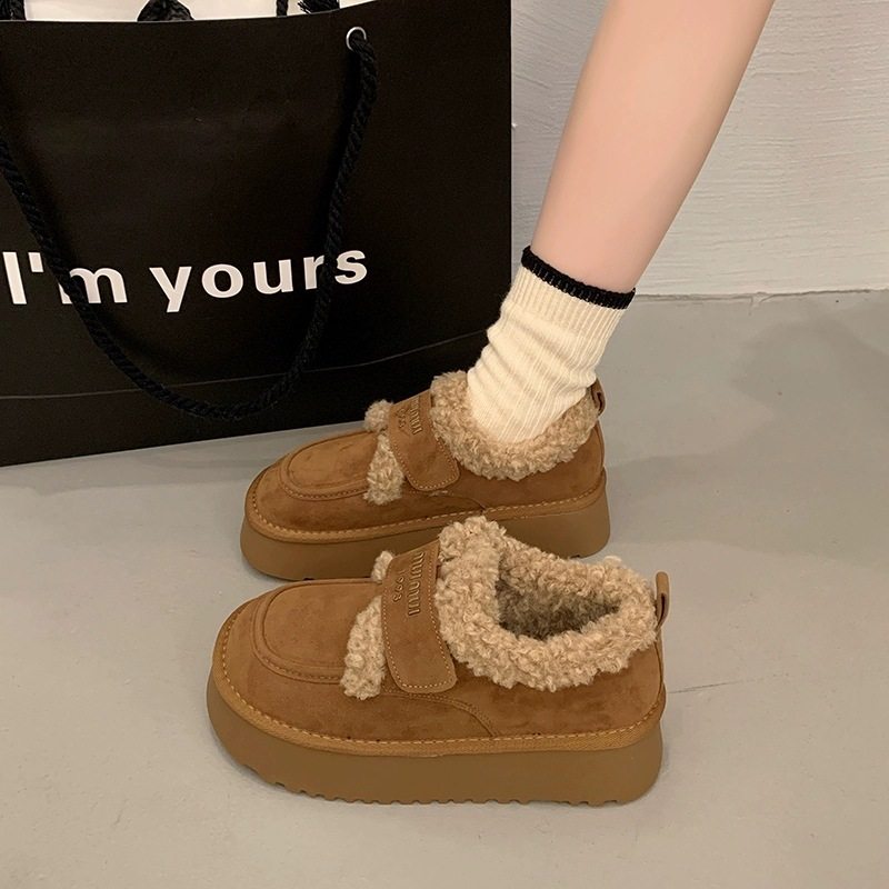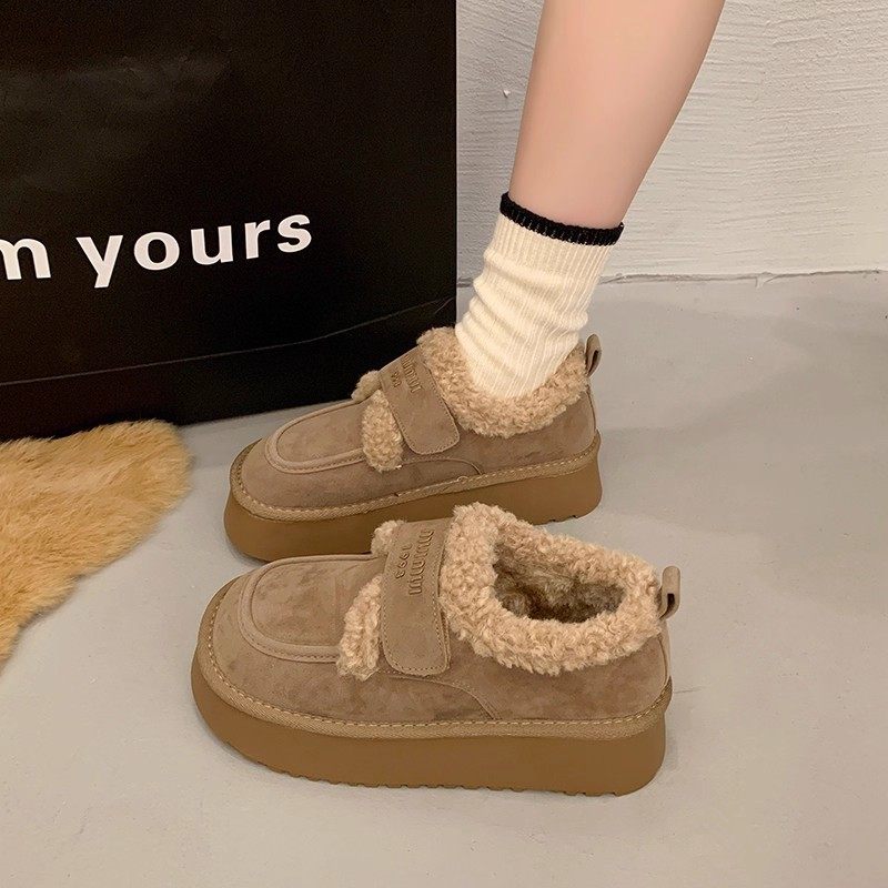 意尔康厚底勃肯鞋女加绒加厚保暖豆豆鞋2025新款冬季雪地靴棉鞋