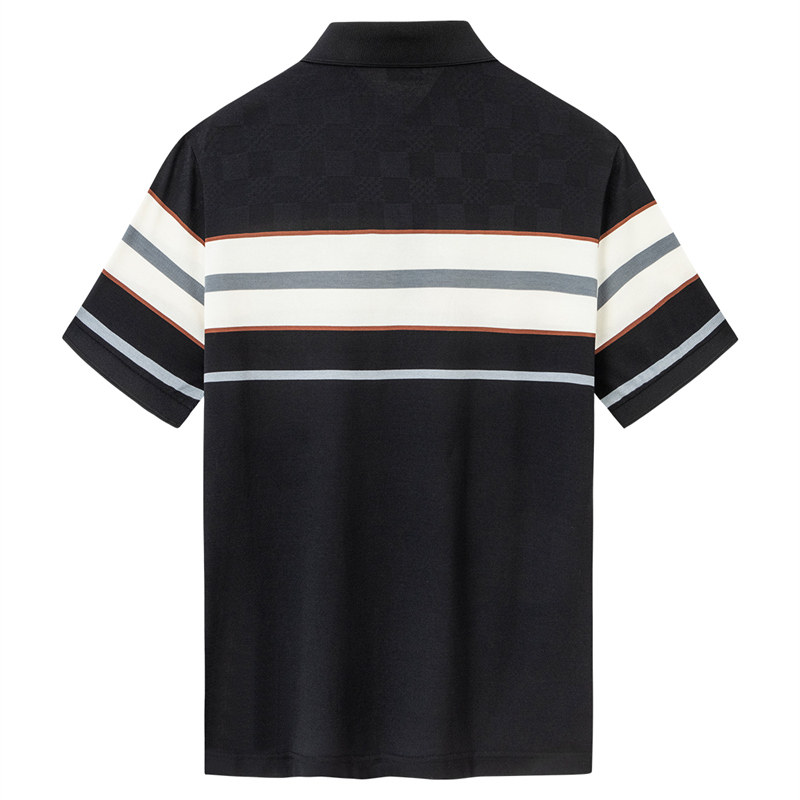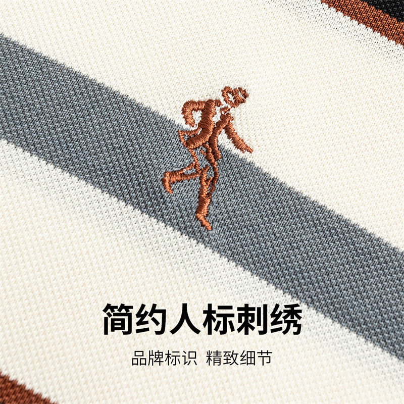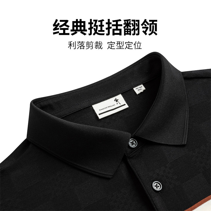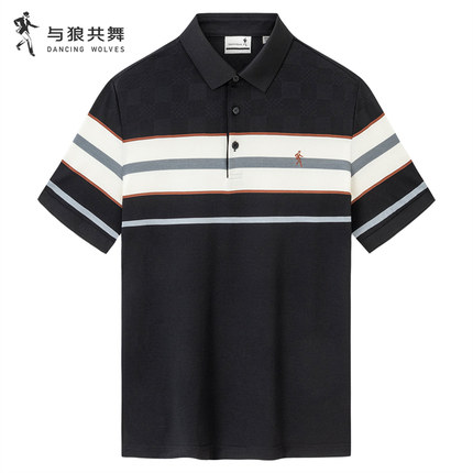 【商场款】与狼共舞条纹翻领短袖T恤男2025夏款桑蚕丝羊毛polo衫