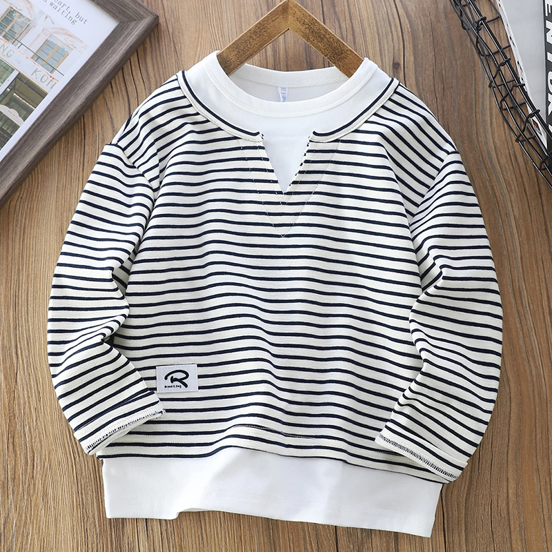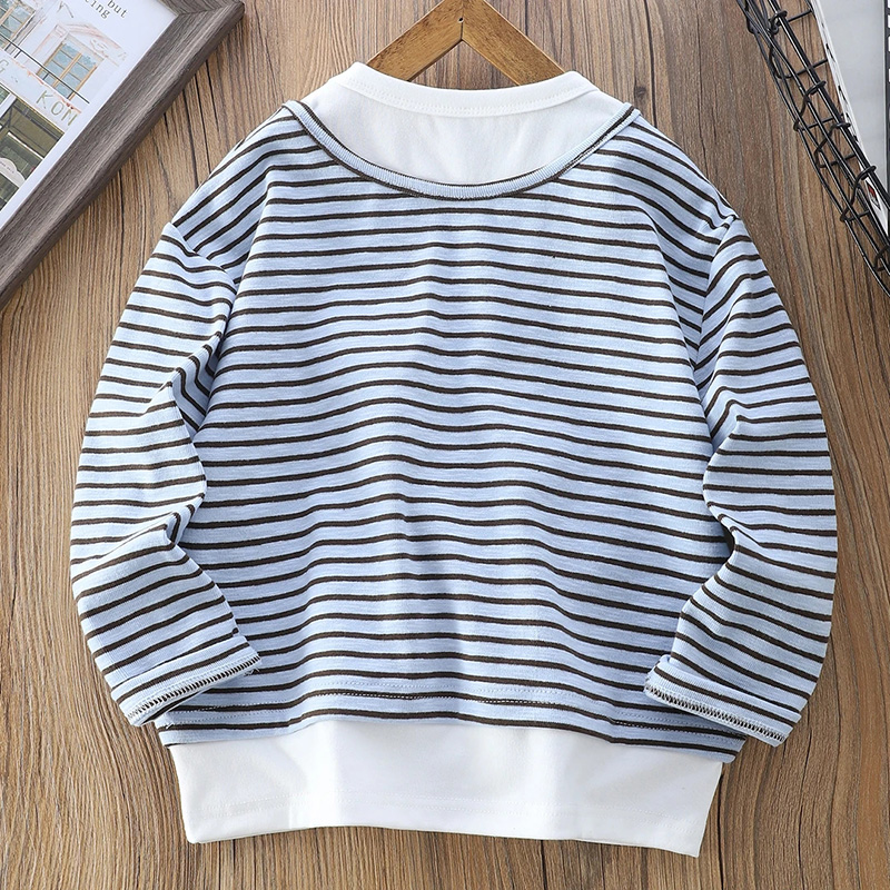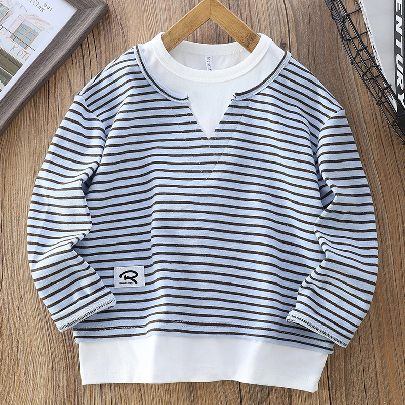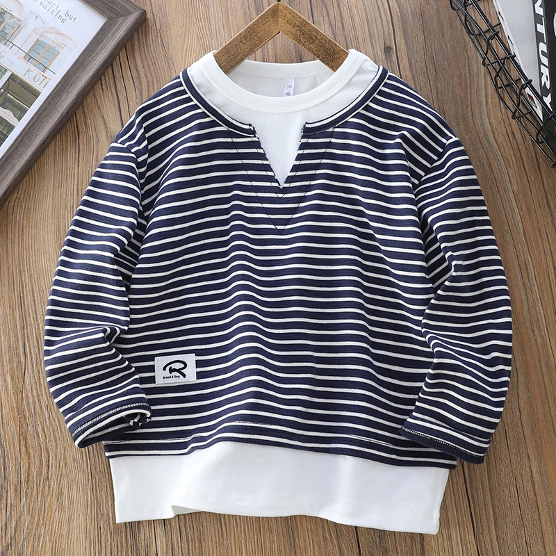 男童秋装纯棉假两件条纹打底衫长袖T恤中大童儿童洋气休闲上衣潮