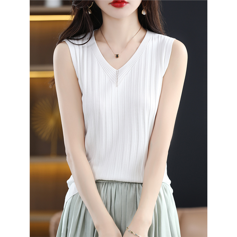 v领冰丝针织吊带背心女夏配西装内搭打底上衣性感修身镂空无袖t恤