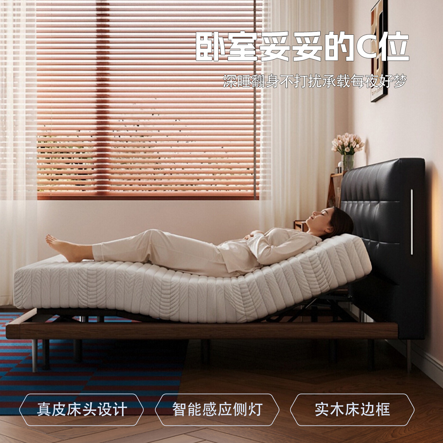 诗享迦华夫格真皮实木电动智能床