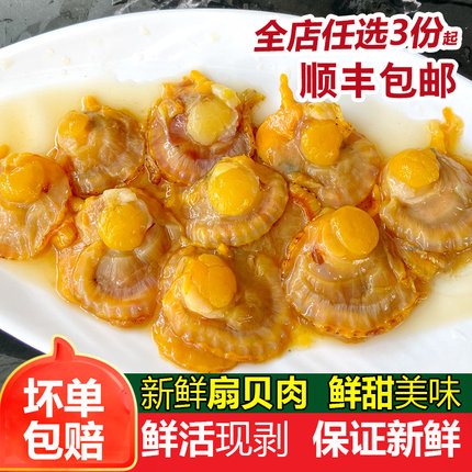 扇贝肉新鲜冷冻鲜活现剥纯肉带黄超大商用海鲜贝类黄贝瑶柱肉250g