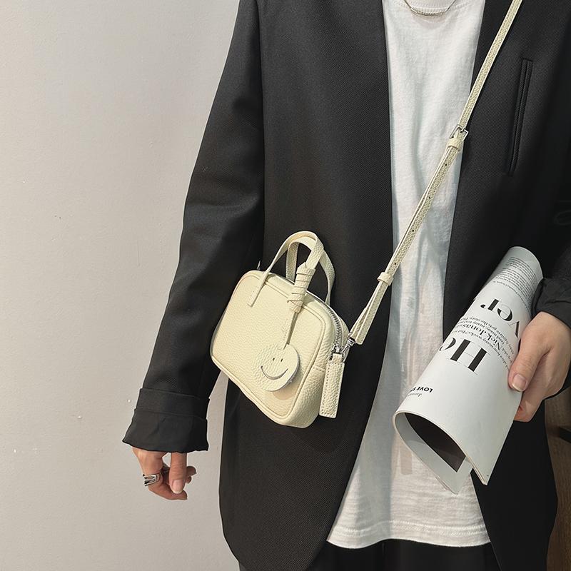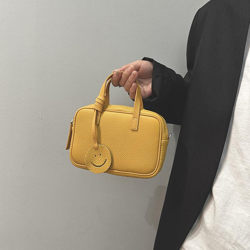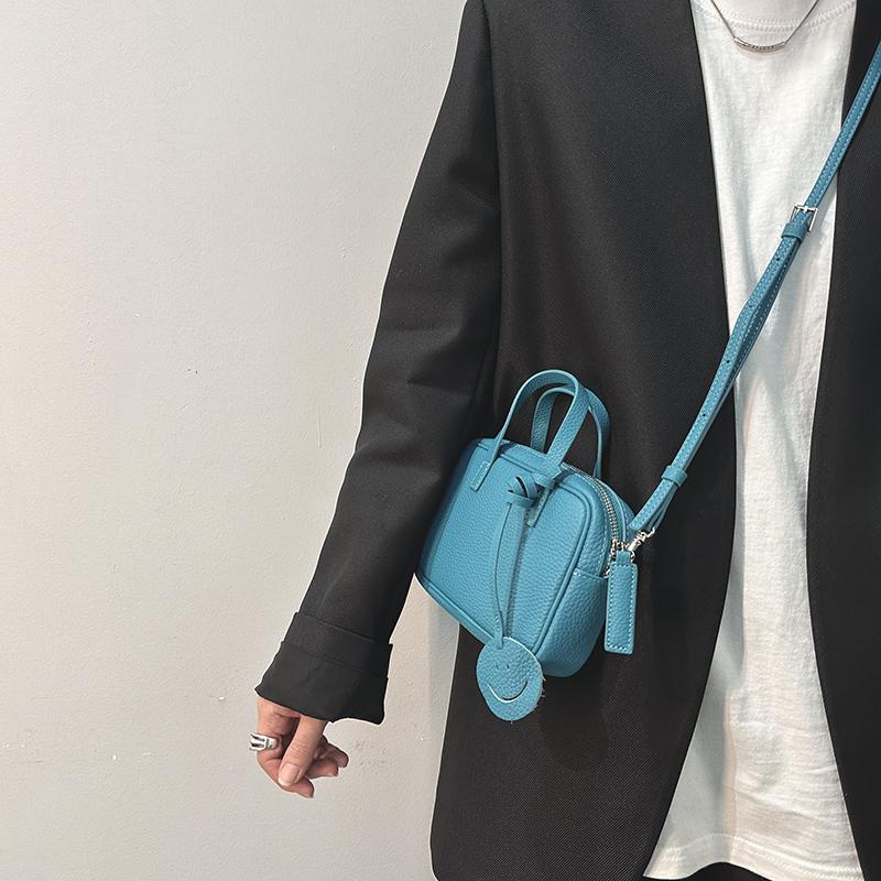 韩版简约头层牛皮保龄球手提包包2025新款时尚真皮小方包斜挎包女