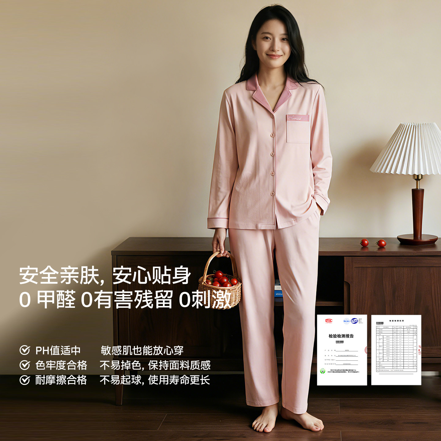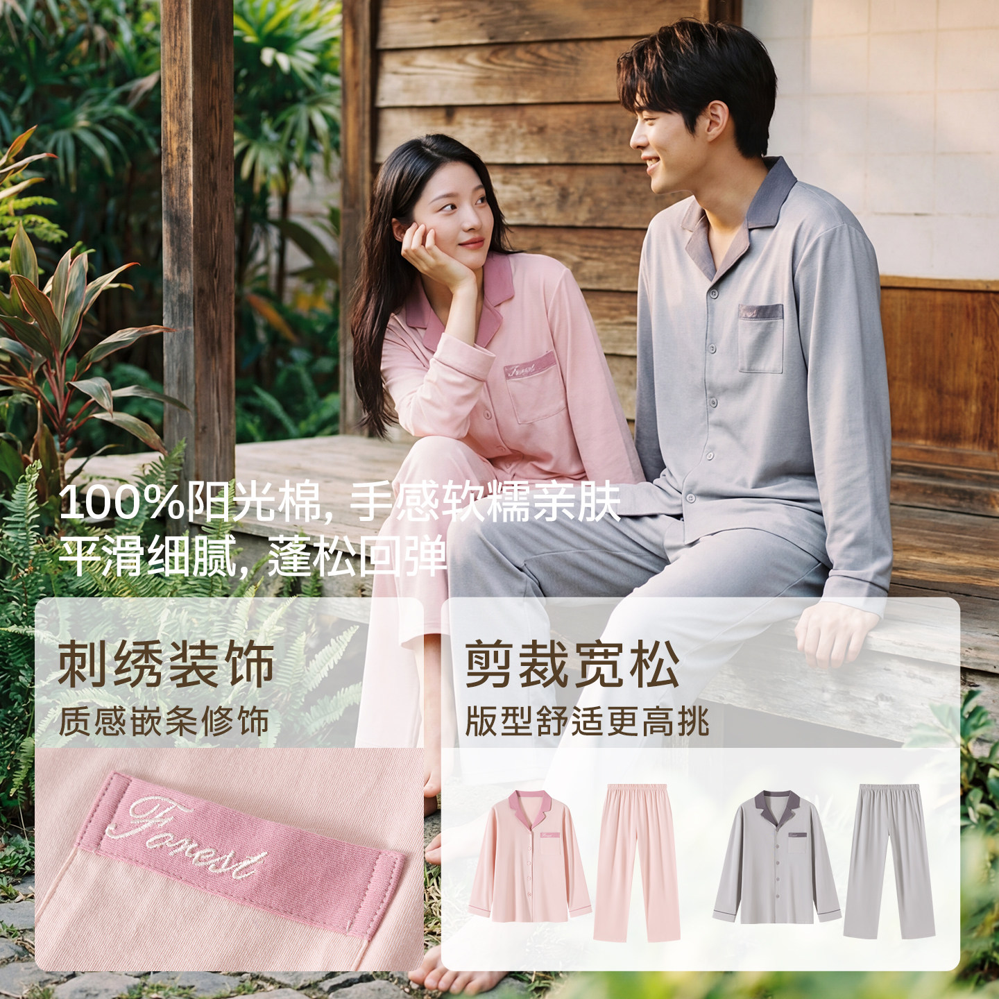 顶瓜瓜纯棉睡衣女款秋春带胸垫长袖简单家居情侣家居服套装男士