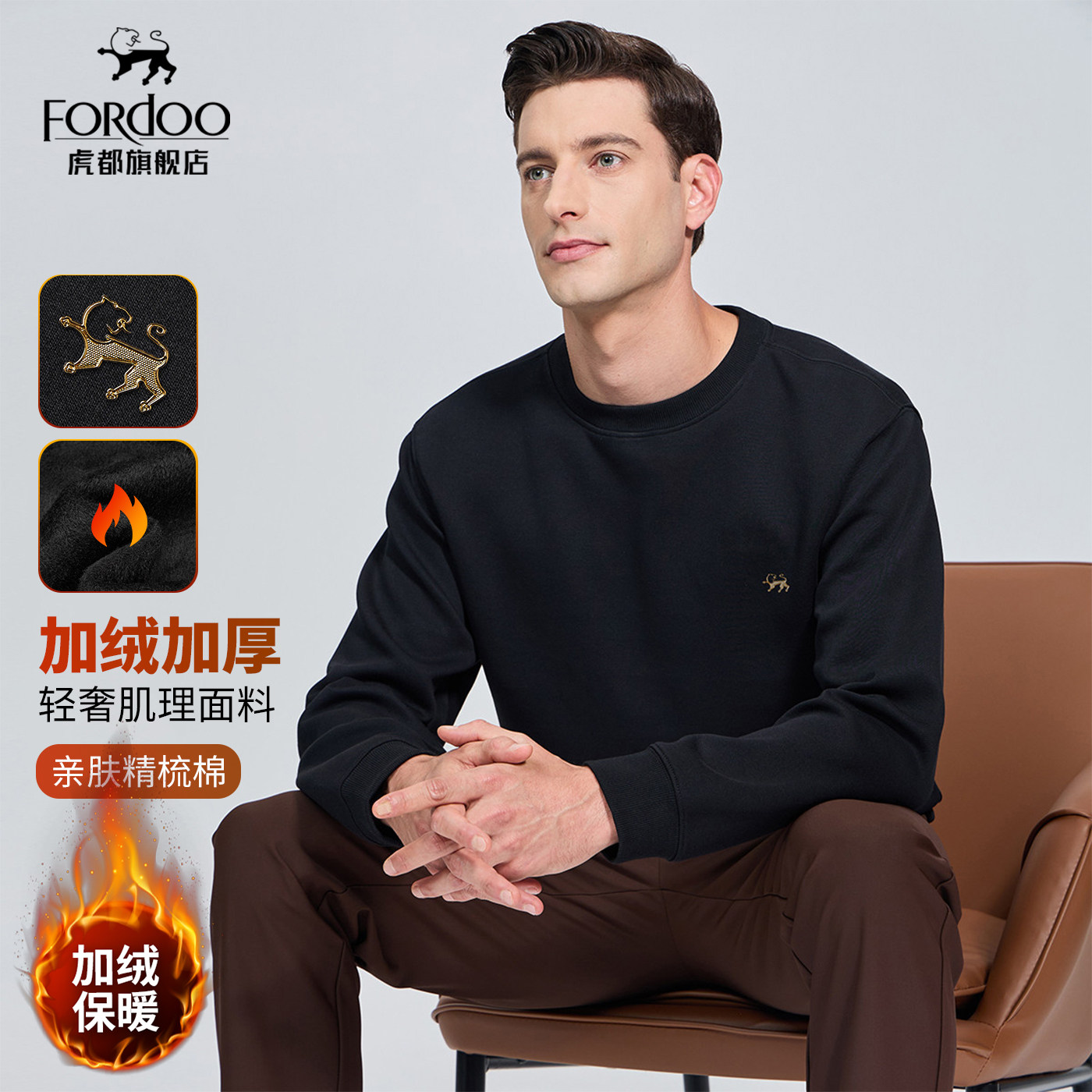 虎都精梳棉圆领卫衣男款长袖T恤