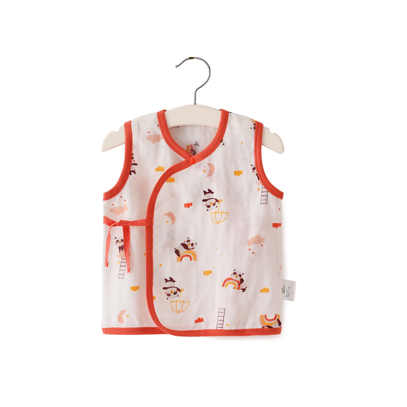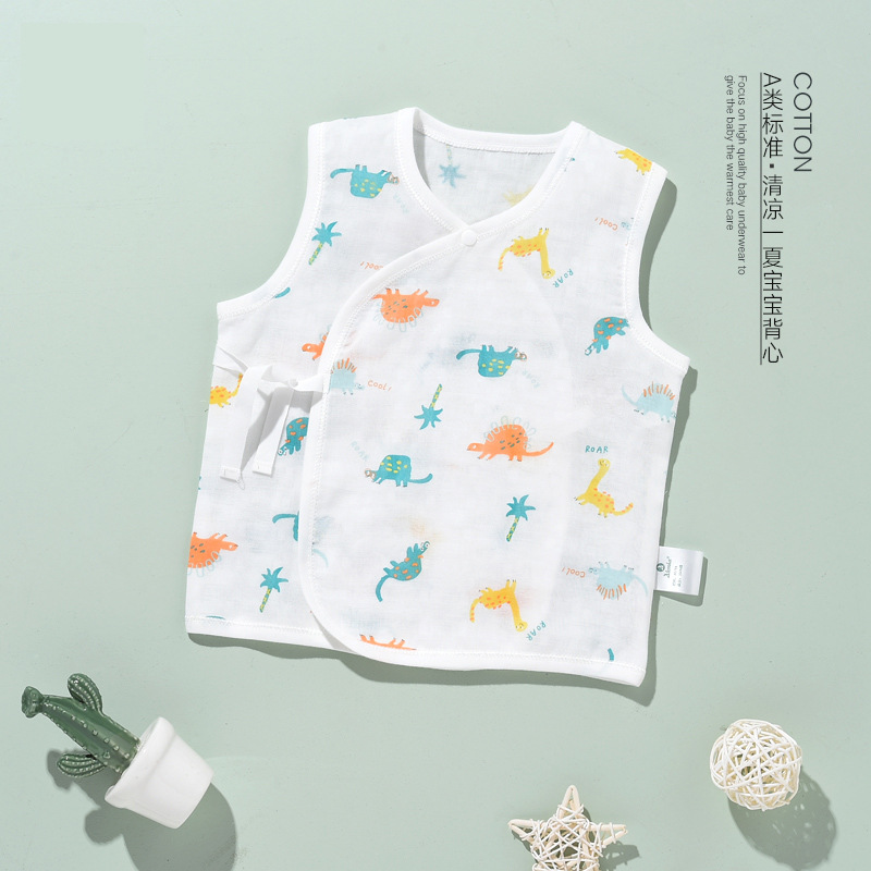 婴儿背心新生儿纯棉纱布衣服夏季无袖纱布背心男女宝宝初生纱布