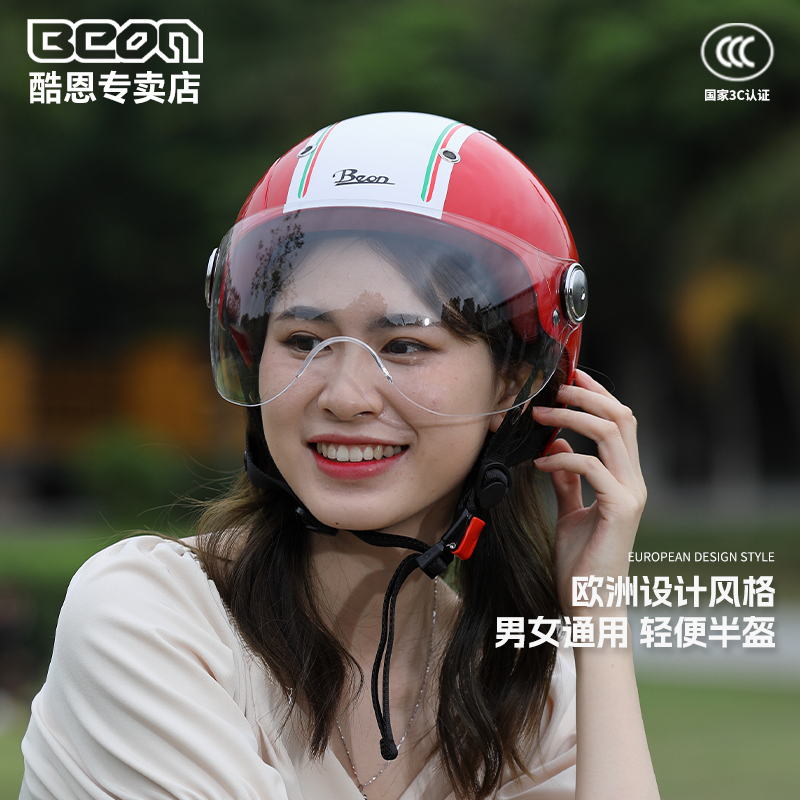 BEON摩托车头盔男女四季通用半盔电动车机车安全盔3C认证国标夏季