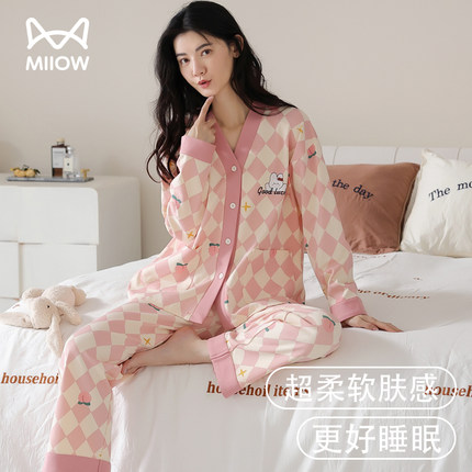 猫人睡衣女士2026春秋新款纯棉开衫长袖四季可外穿高级家居服套装