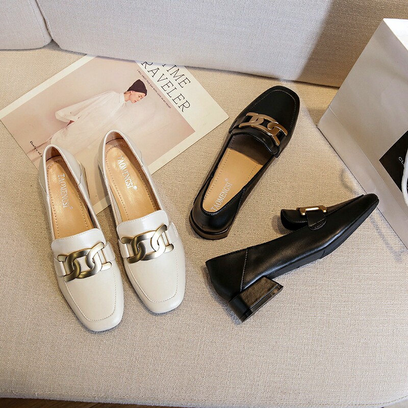 乐福鞋英伦新款粗跟小皮鞋