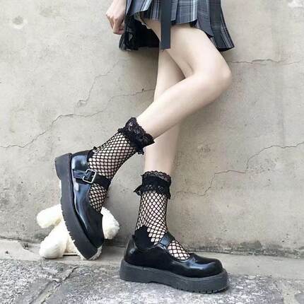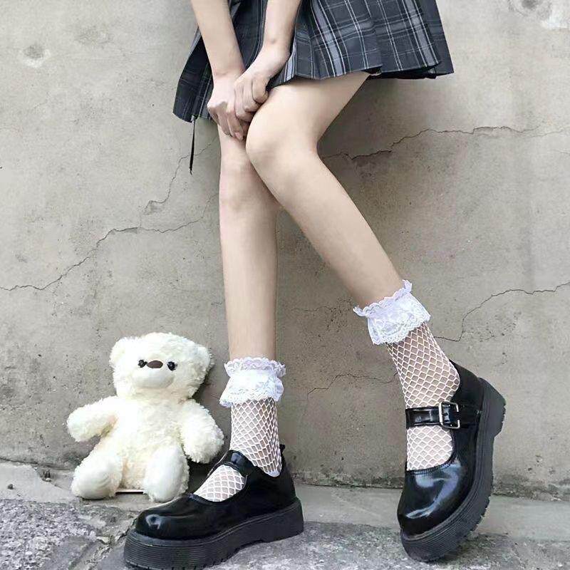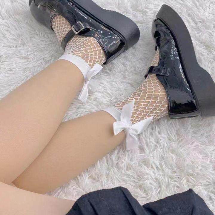 性感蕾丝边渔网袜黑丝白丝网红潮流短袜小蝴蝶结中筒女士袜子