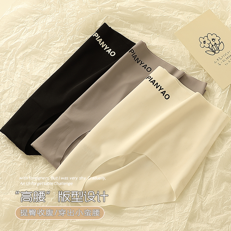 无痕内裤女冰丝裸感蜜桃臀高腰夏季薄款收腹大码女士运动三角短裤