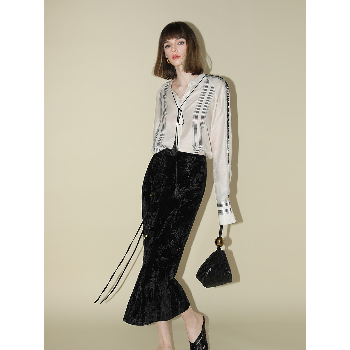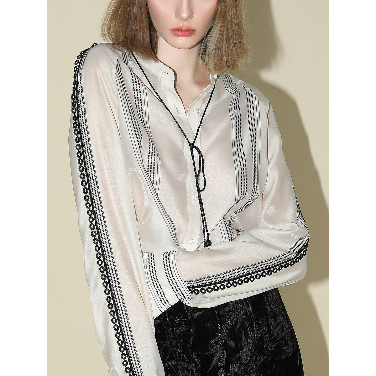 COCOBELLA小立领印花条纹衬衫