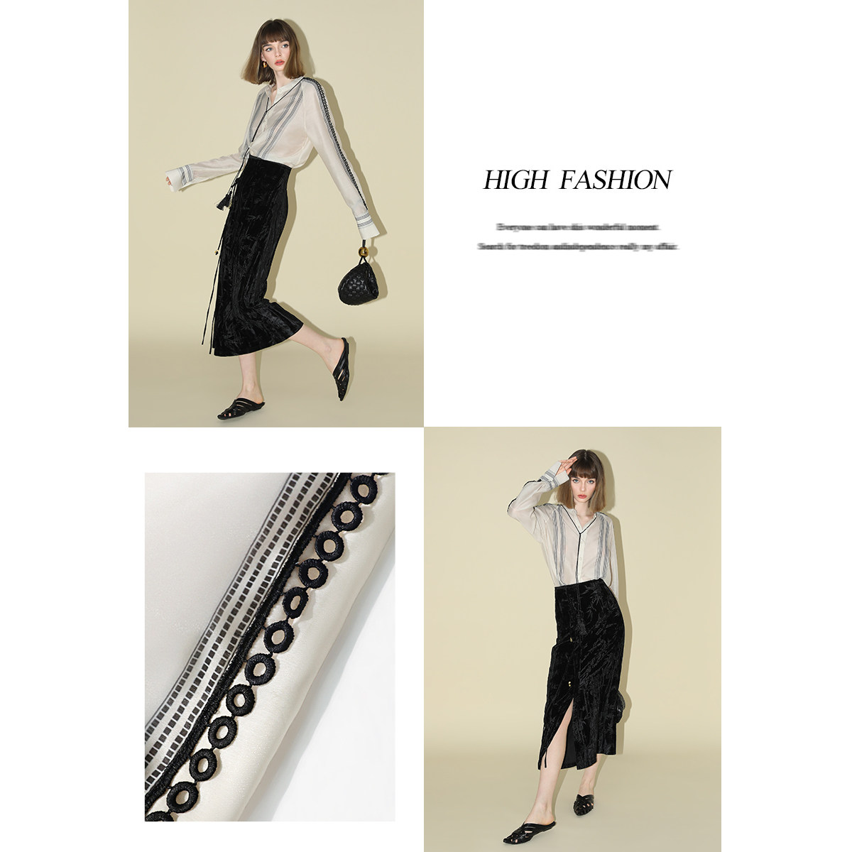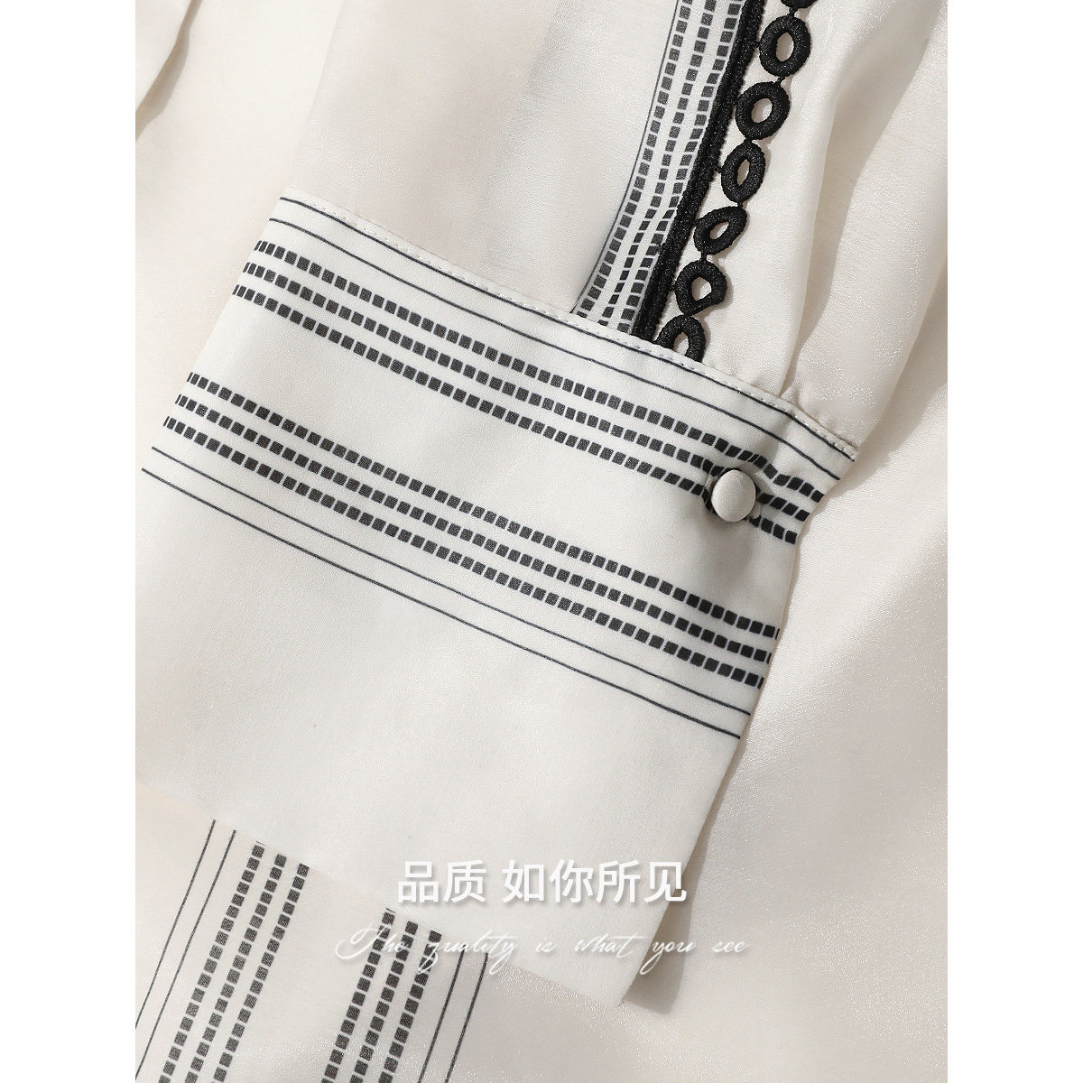 COCOBELLA蕾丝拼接条纹衬衫女秋气质通勤立领长袖衬衣SR0015-2