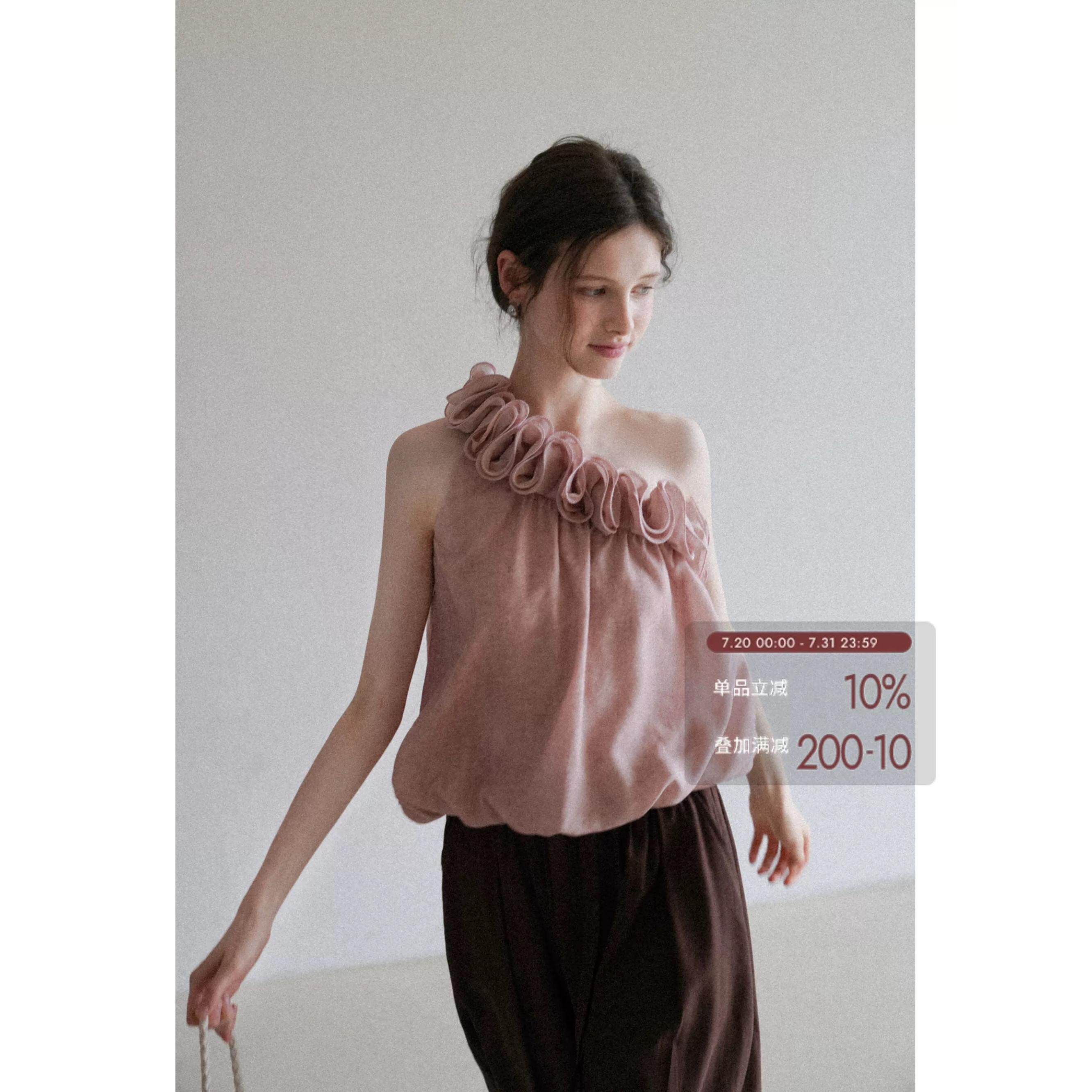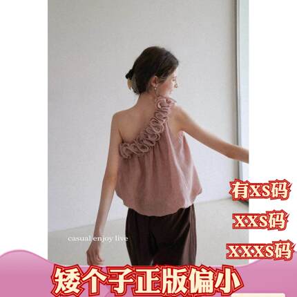 春装女装小矮个子150cm加小码XXXS号重工花边斜肩花苞背心女无袖