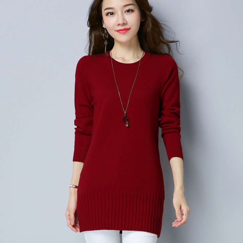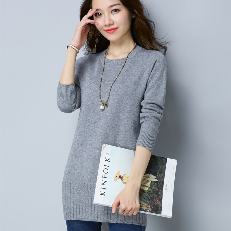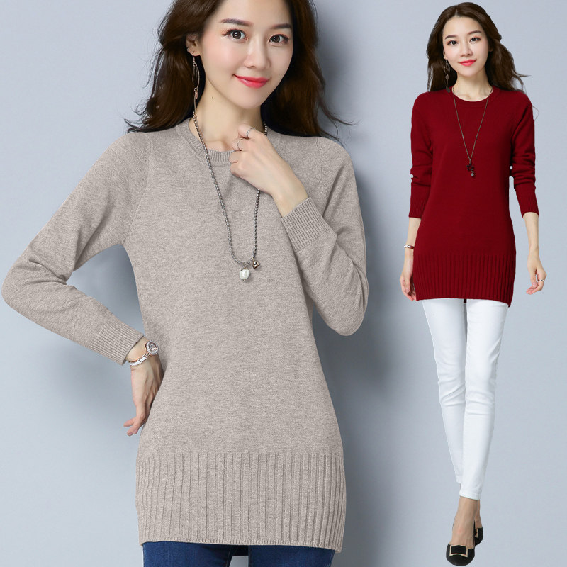 中长款羊毛衫秋装2024年新款羊绒毛衣女宽松外穿低领打底衫女秋冬