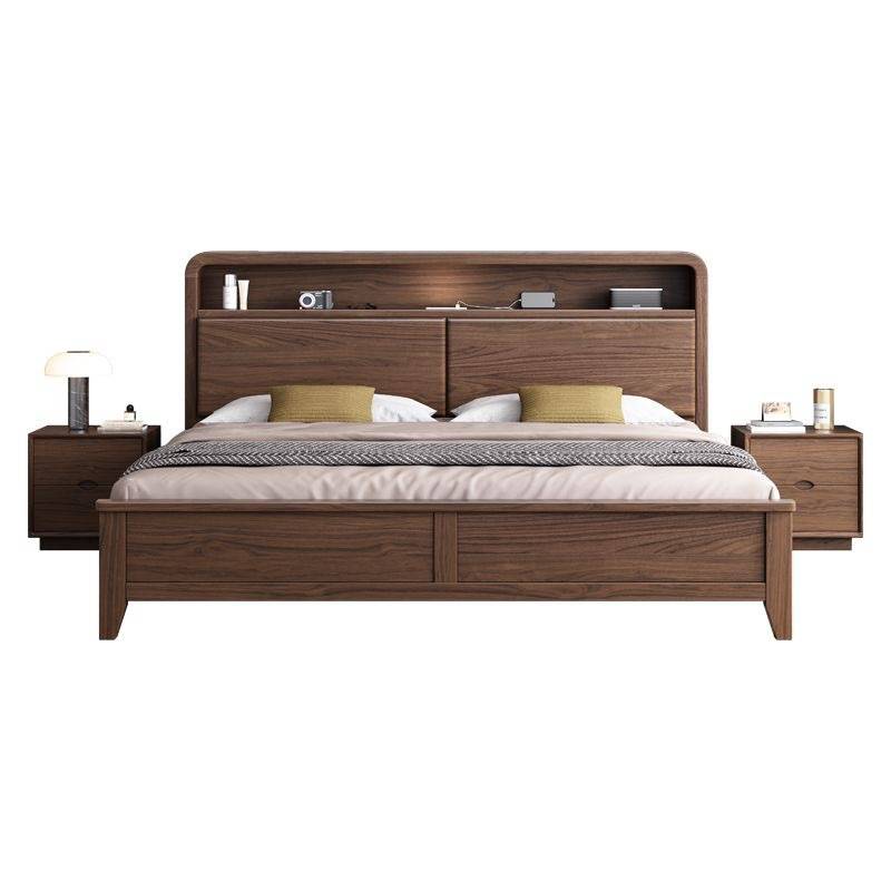 现代简约黑胡桃木实木床1.8米双人床1.5米带夜灯卧室实木家具婚床