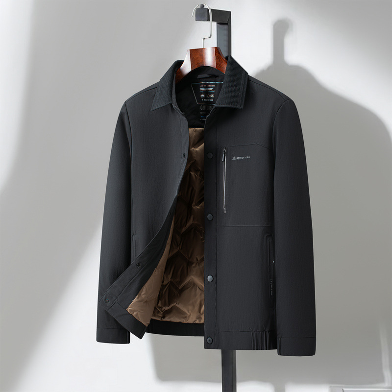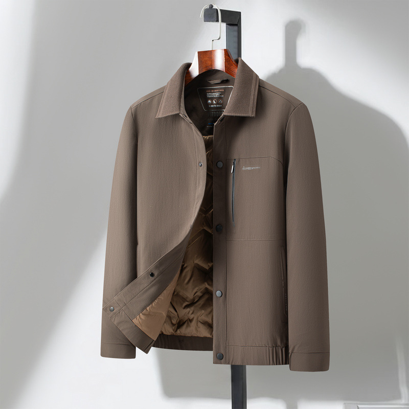 送父亲防风翻领羽绒服季新款男装中老年商务休闲简约舒适外套
