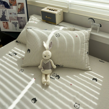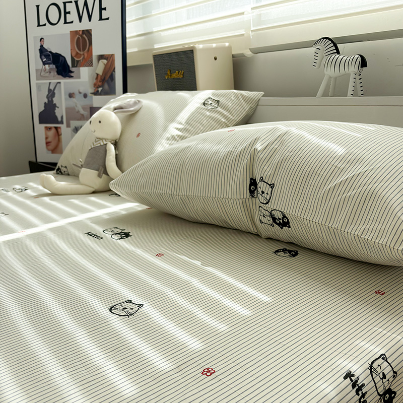 唐朝一只鱼全棉线条萌猫单枕套