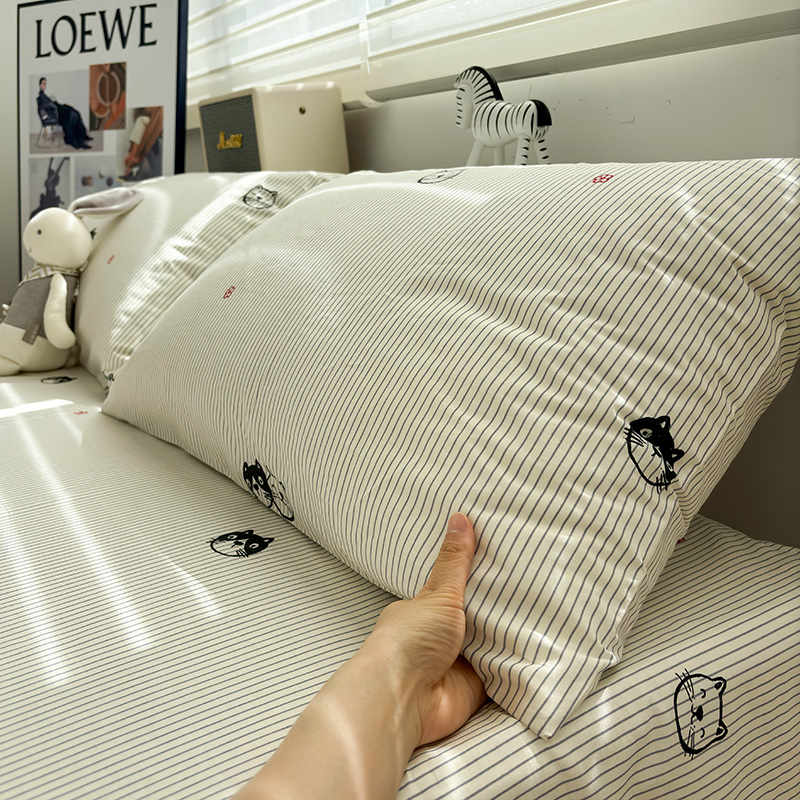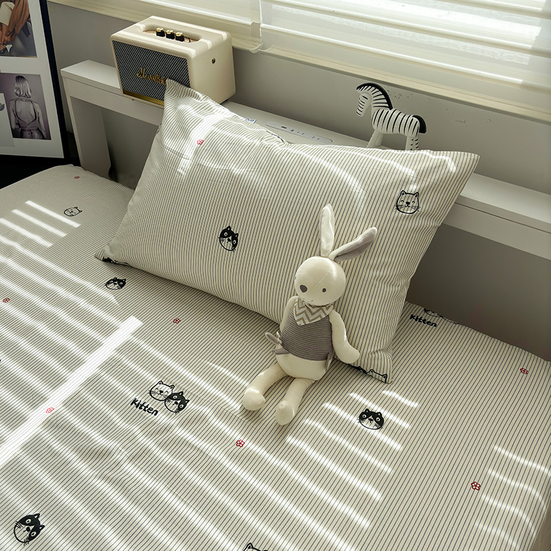 线条萌猫纯棉枕套套一对装单人全棉枕头套单个48x74学生宿舍枕袋