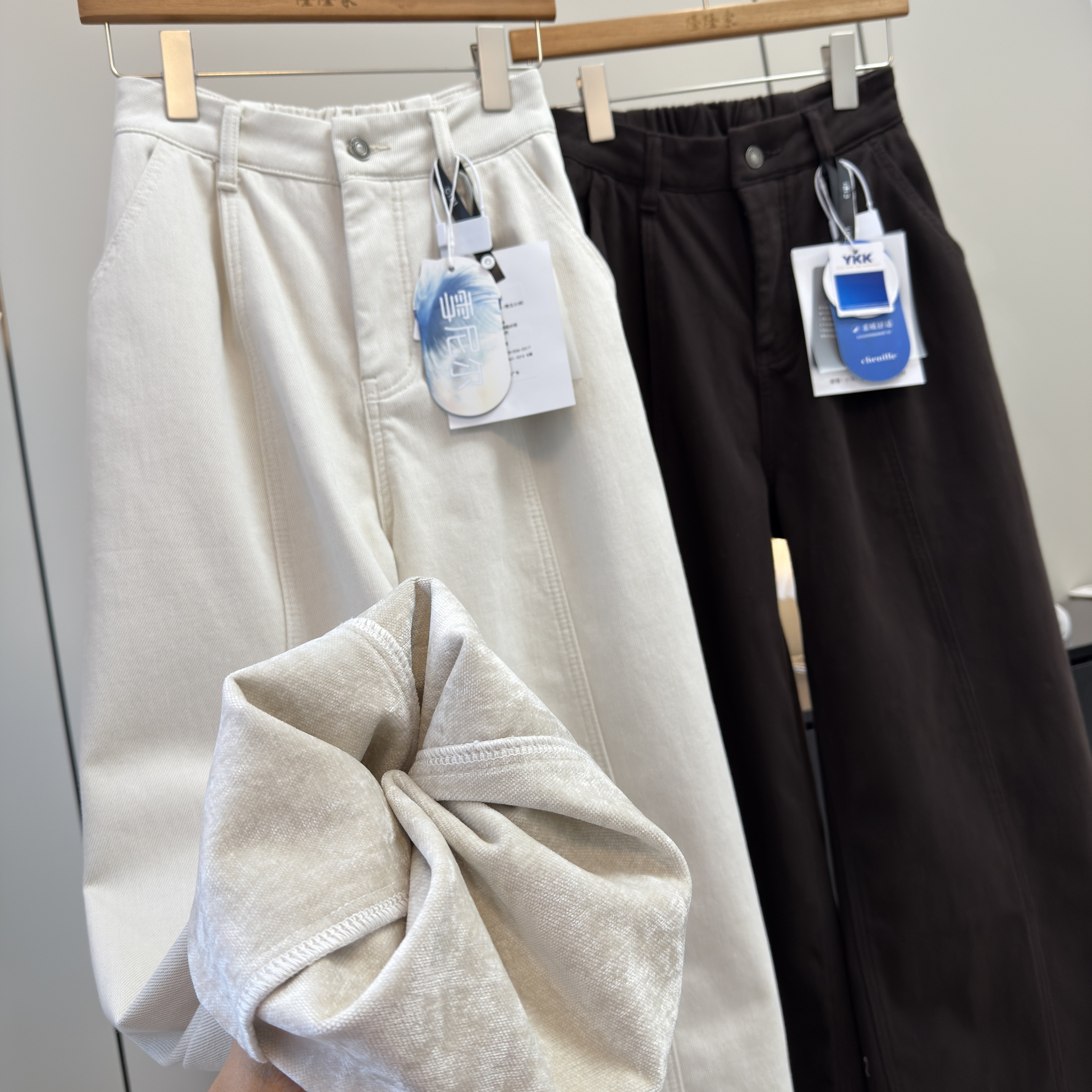 大厂订单!秋冬保暖雪妮尔绒加厚保暖宽松窄版牛仔阔腿裤杨桃裤