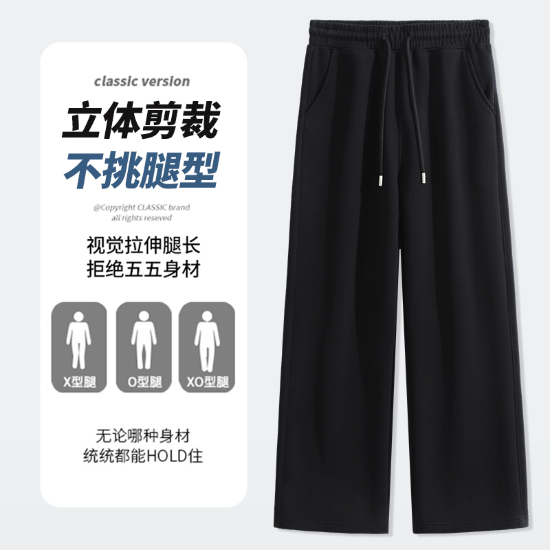 GV真维斯重磅休闲裤子男春秋款黑色运动直筒裤男士男款宽松长裤A