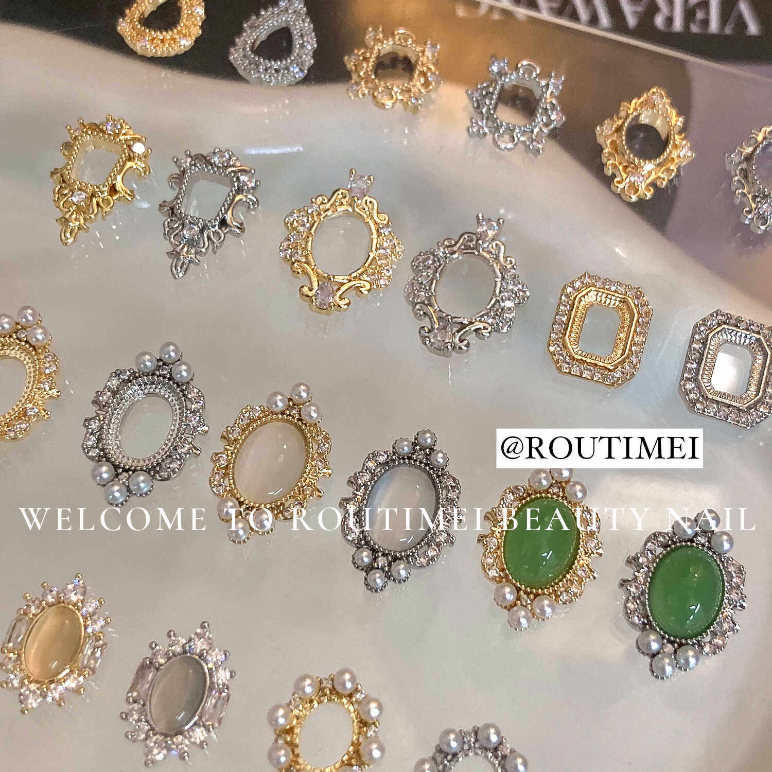 美甲饰品新款复古相框系列高级猫眼饰品百搭款式自带钻网络流行款