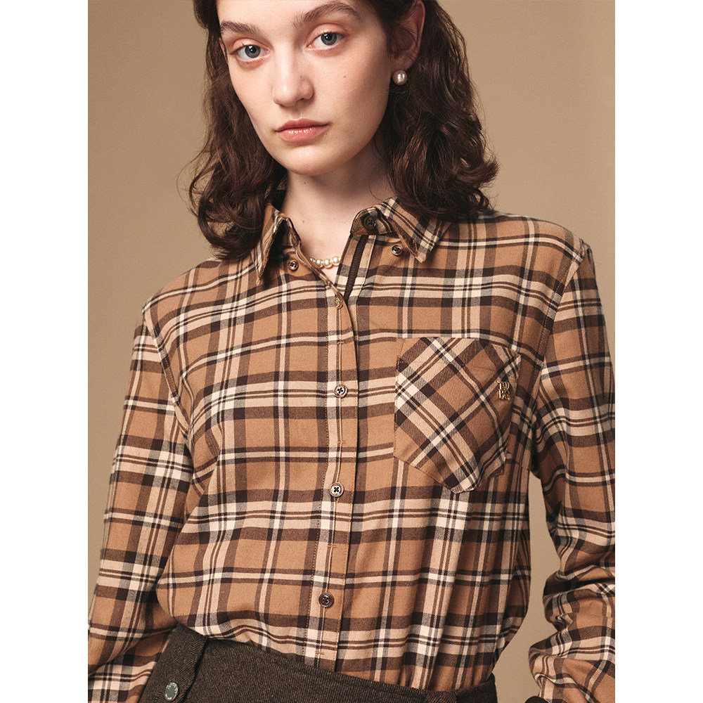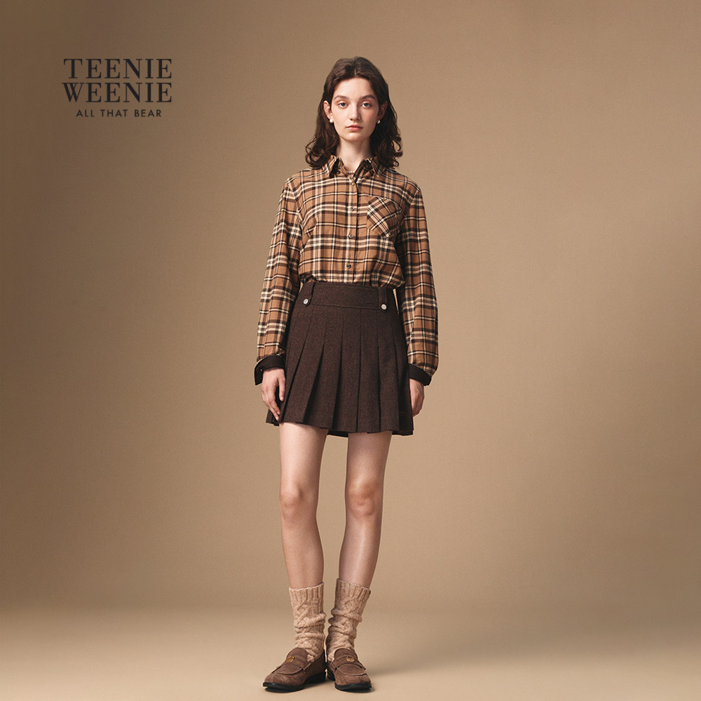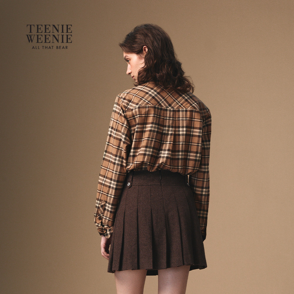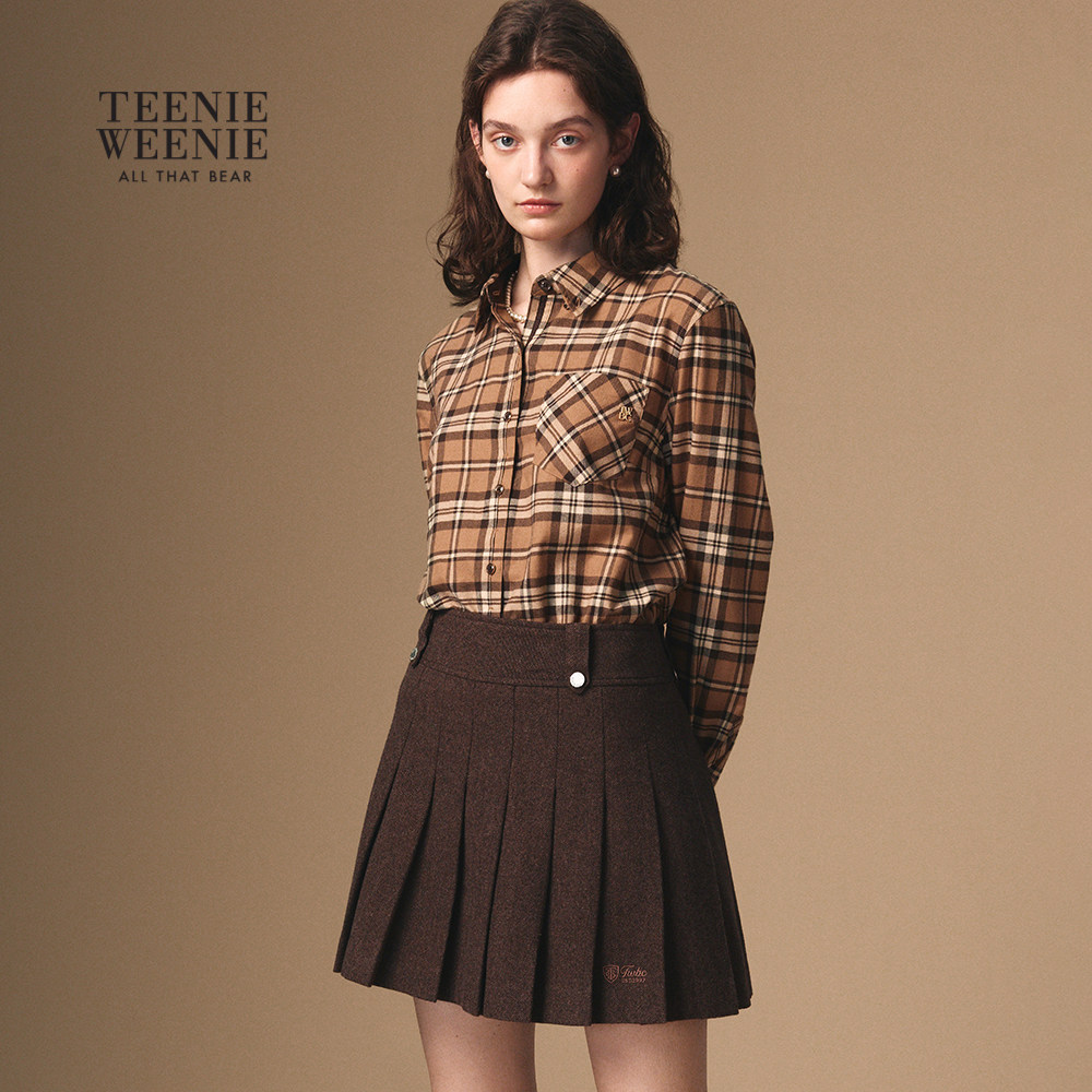 TeenieWeenie小熊女装衬衫2025冬季新款复古宽松气质通勤格纹上衣