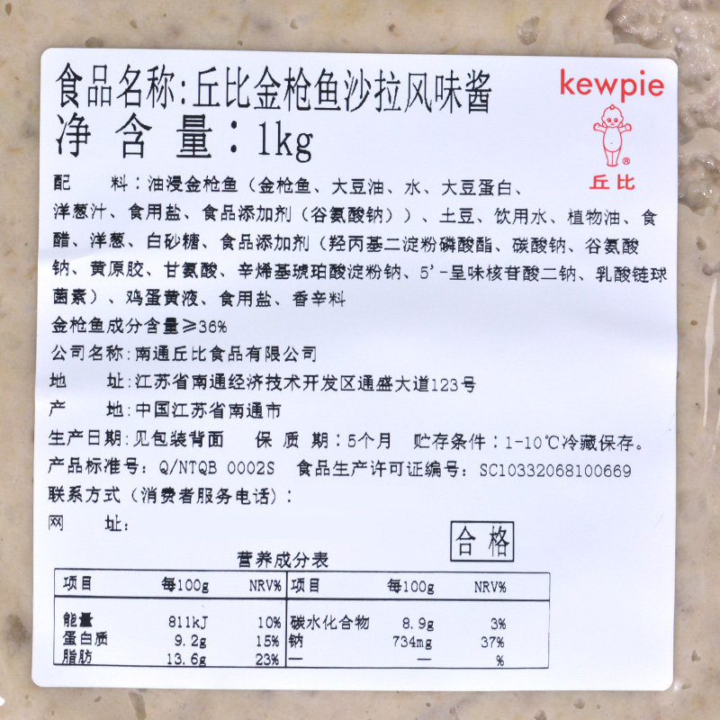 丘比金枪鱼沙拉风味酱1kg即食吞拿鱼沙拉酱汉堡三明治寿司夹心酱