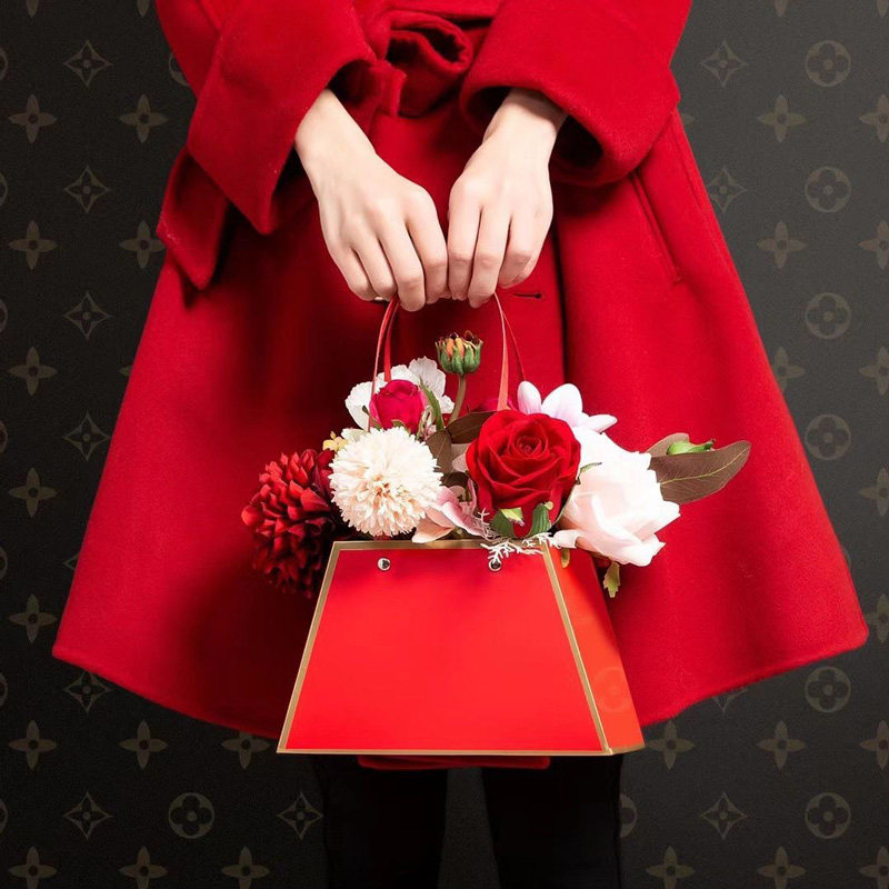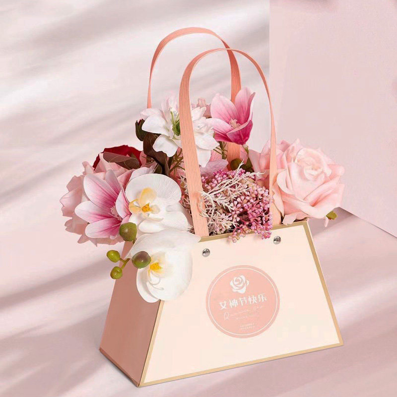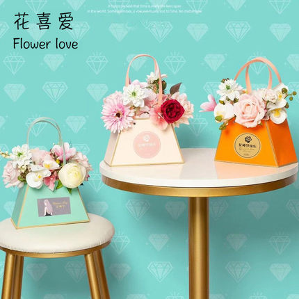 花喜爱女神节花盒手提袋节日插花礼盒花艺插花篮花店鲜花包装材料