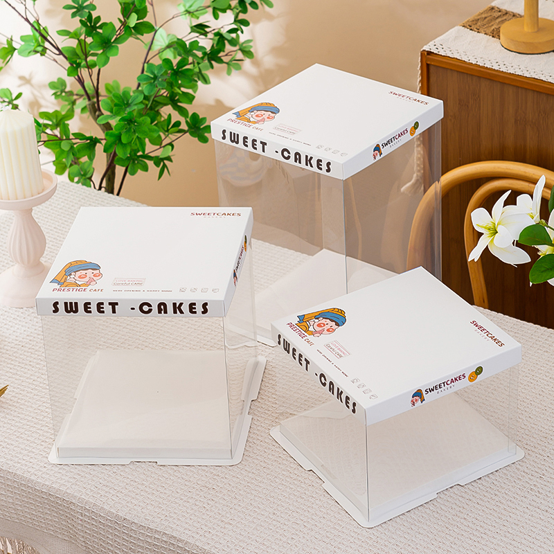 全透明6/8/10/12寸生日蛋糕盒子手提六八十寸加高烘焙包装盒定制