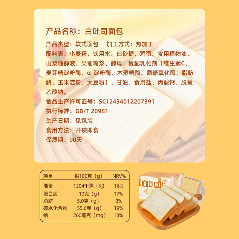 奶香白吐司面包早餐整箱速食三明治专用切片代餐解馋小零食蛋糕点